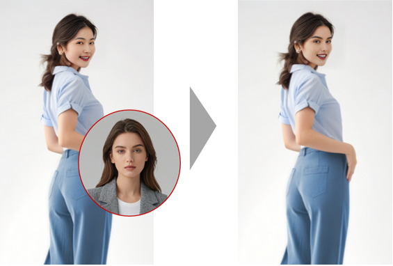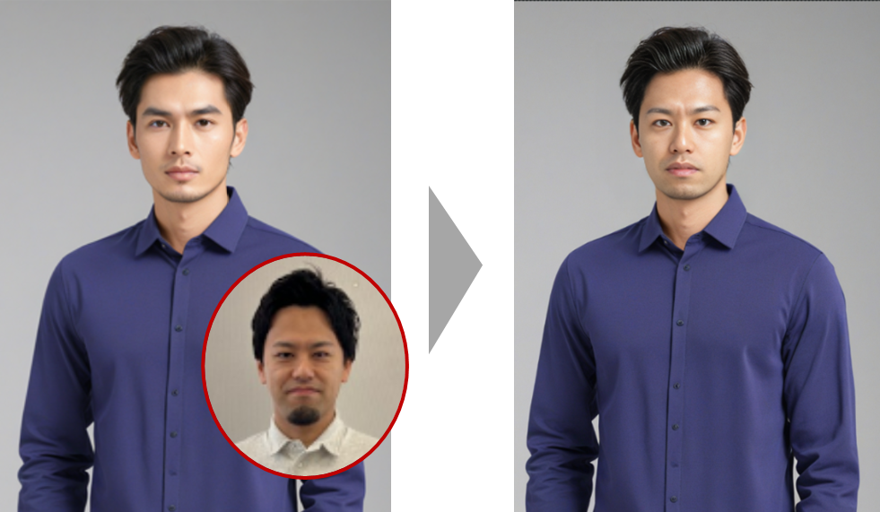 ユーザー企業様より、“手持ちの画像の顔だけ変更したい”、“指定した顔に変更したい”という声をいただき、「顔変更」を実装いたしました。