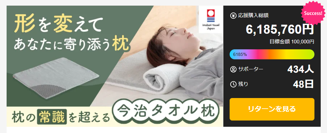 【応援購入総額600万円を突破/総合ランキング4位を獲得!】寝具専門店が作る「枕の常識を超える今治タオル枕」が応援購入サイトMakuakeにて先行発売中!
