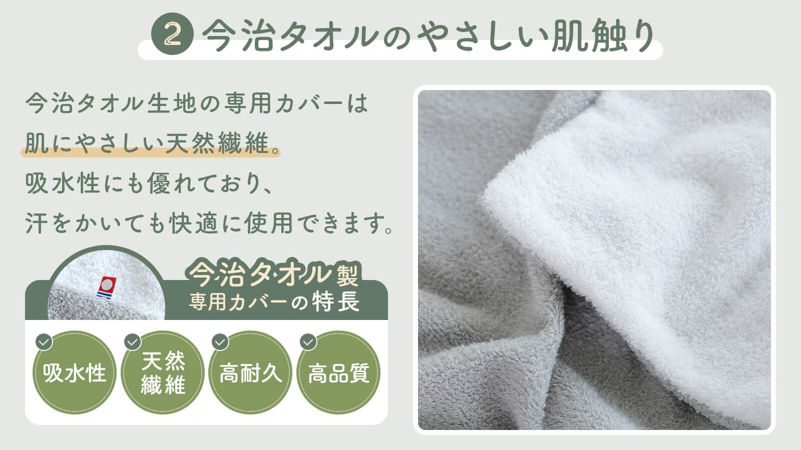 枕は肌に直接触れるからこそ、今治タオルのやさしい肌触りにこだわりました。