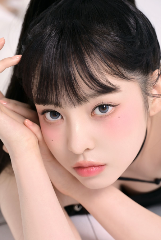 チューレンズ初のブルーレンズ。澄んだブルーブラックカラーと、花びらのスジのようなグラデーションパターンがキラキラしたまなざしを演出。