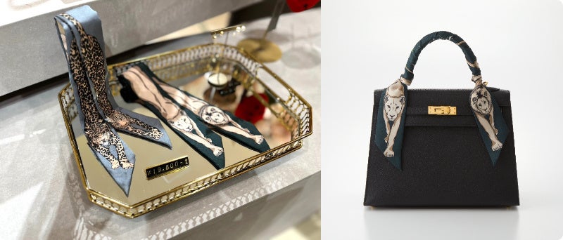 動物やフルーツのモチーフがキュートなバッグチャームや、バッグのハンドルに巻いても使える新商品のオリジナルシルクスカーフも注目を集めました。