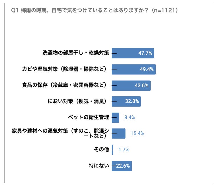 【Q1】梅雨の時期、自宅で気をつけていることはありますか?(複数選択可)