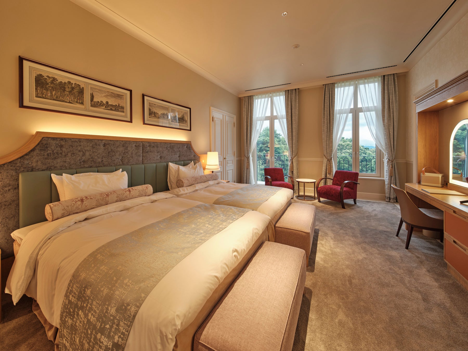 直輸入したフランスワインと正統派フランス料理、高い天井と大きな縦長の窓がある開放的な客室、欧州から取り寄せたシャンデリアや調度品、絵画など、日本にいながらにしてフランスの邸宅にいるようなご滞在を体験していただけます。