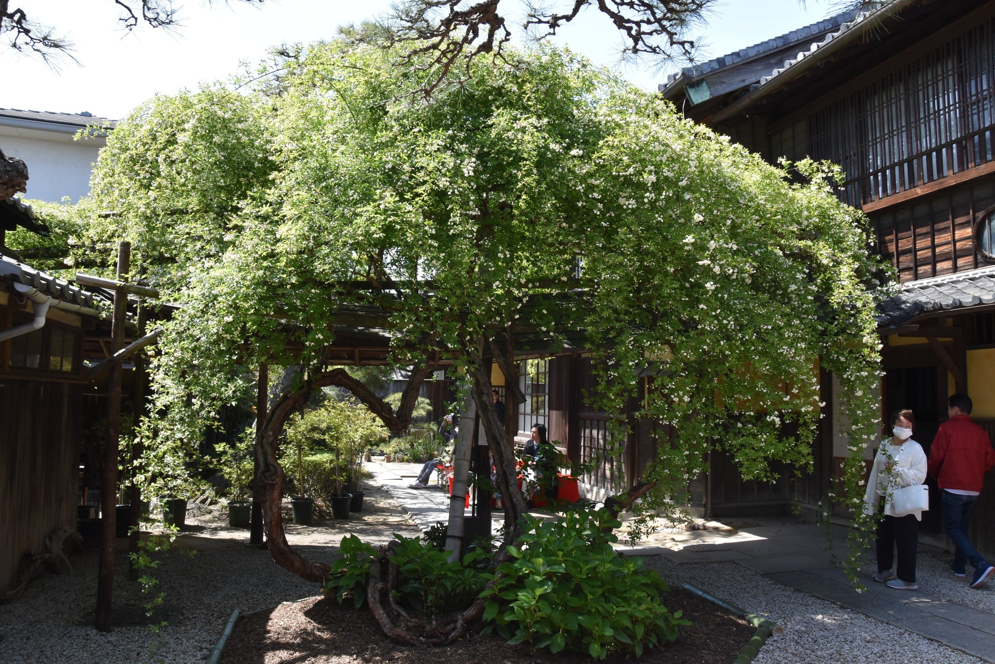 萬三の白モッコウバラは、国指定重要文化財 小栗家住宅にあります。樹齢は150年以上で、日本最古・最大級のモッコウバラと言われており、半田市の天然記念物に指定されています。