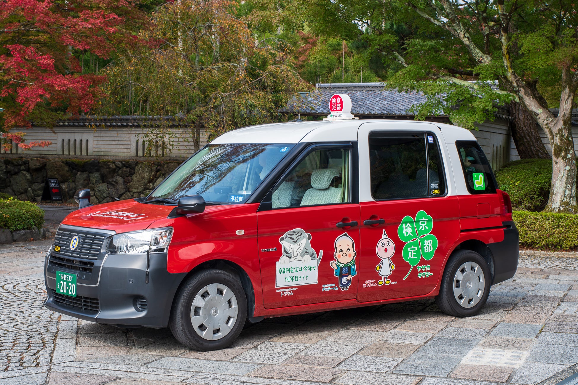 京都検定20周年を記念して、同検定にゆかりのあるキャラクターを車体に登場させた、京都市域ヤサカタクシー1,200台のうち1台のみの特別仕様車です。イベント当日は会場前に展示し、多くのみなさんに間近で見て触れていただける予定です。