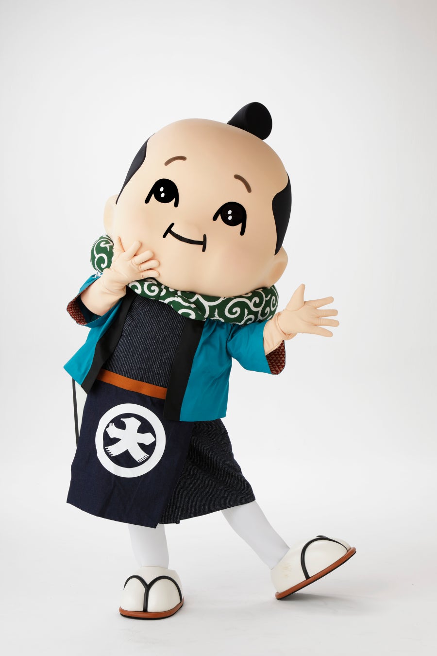 「京都大好き推進室長」に任命された、大丸京都店のシンボルキャラクターを務めているデッチーくんです。 大丸の発祥は呉服店。そこで勤めていた時のファッションで現在もお仕事しています。腰には大福帳をぶらさげ、商品や夢などがたくさん詰まった風呂敷包みを大事に抱えて、日々お客さまに笑顔をお届けできるよう奮闘しています。