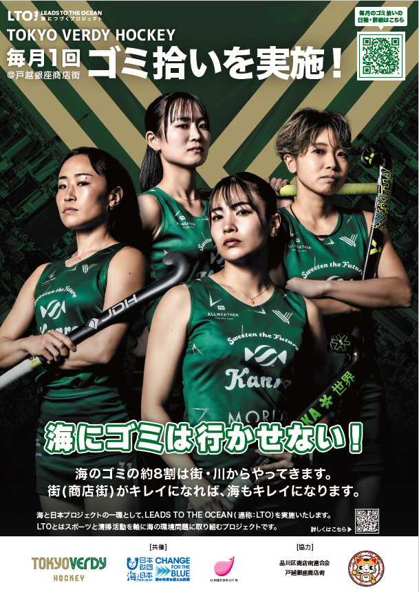 東京ヴェルディホッケーチームでは、スポーツの持つ社会的影響力を活かし、地域と共に持続可能な未来を築くことを理念に掲げています。これまでにも、地元地域での清掃活動やリサイクル素材を使用したジャージ作成、コーポレートパートナーであるモリト株式会社の兵庫県香住町今子浦海岸における海岸清掃の取り組みへの選手参加など、環境意識を高める取り組みを行ってきました。