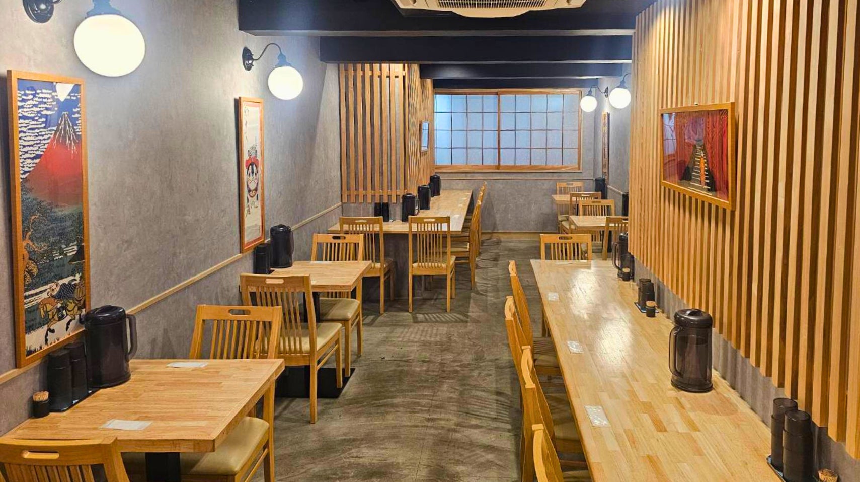 店内は和を連想させる内装で温かみのある雰囲気。一階はカウンター6席、二階はカウンター14席、テーブル4卓8席の計28席をご用意。一人でも、グループでも気軽にご入店いただけます。