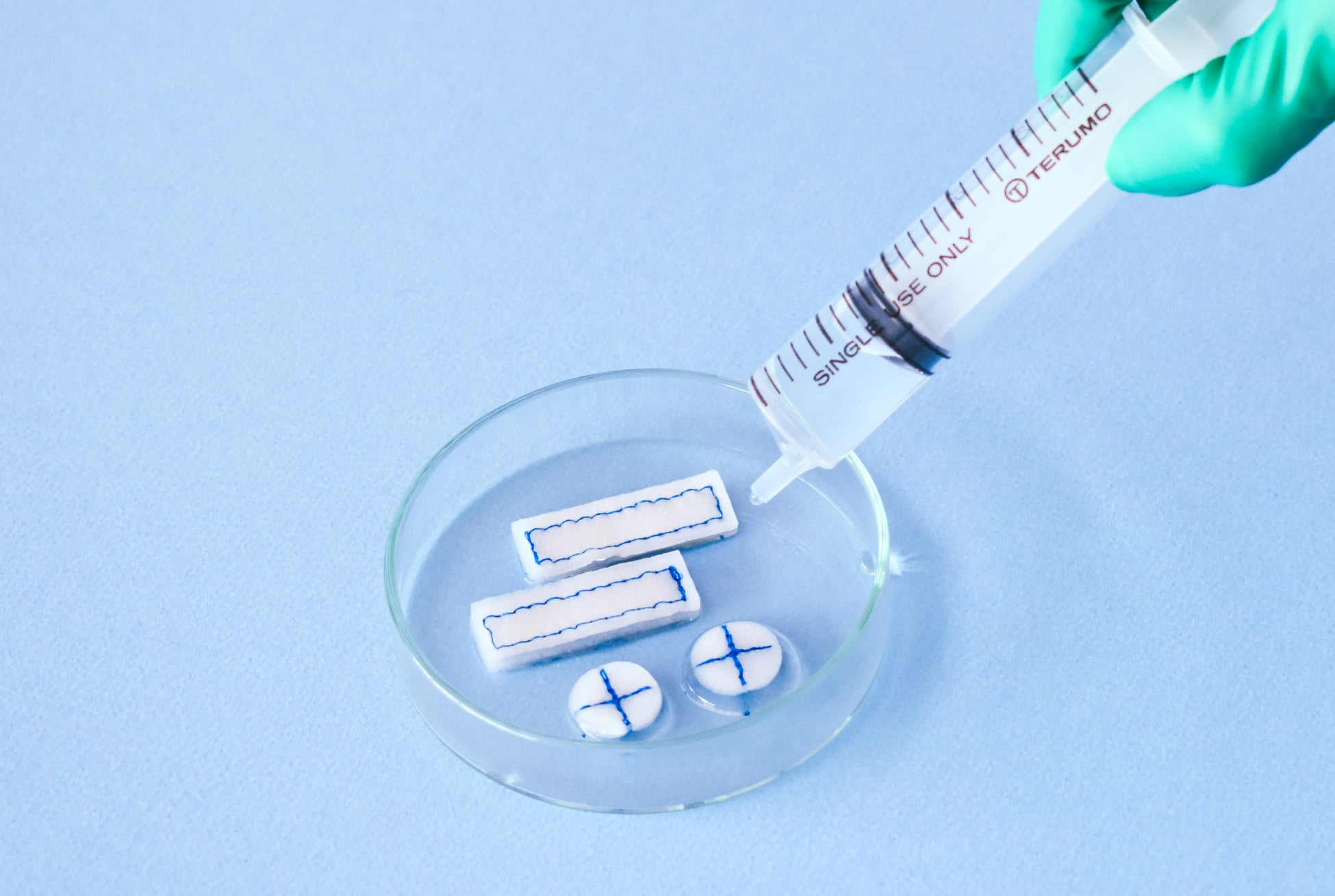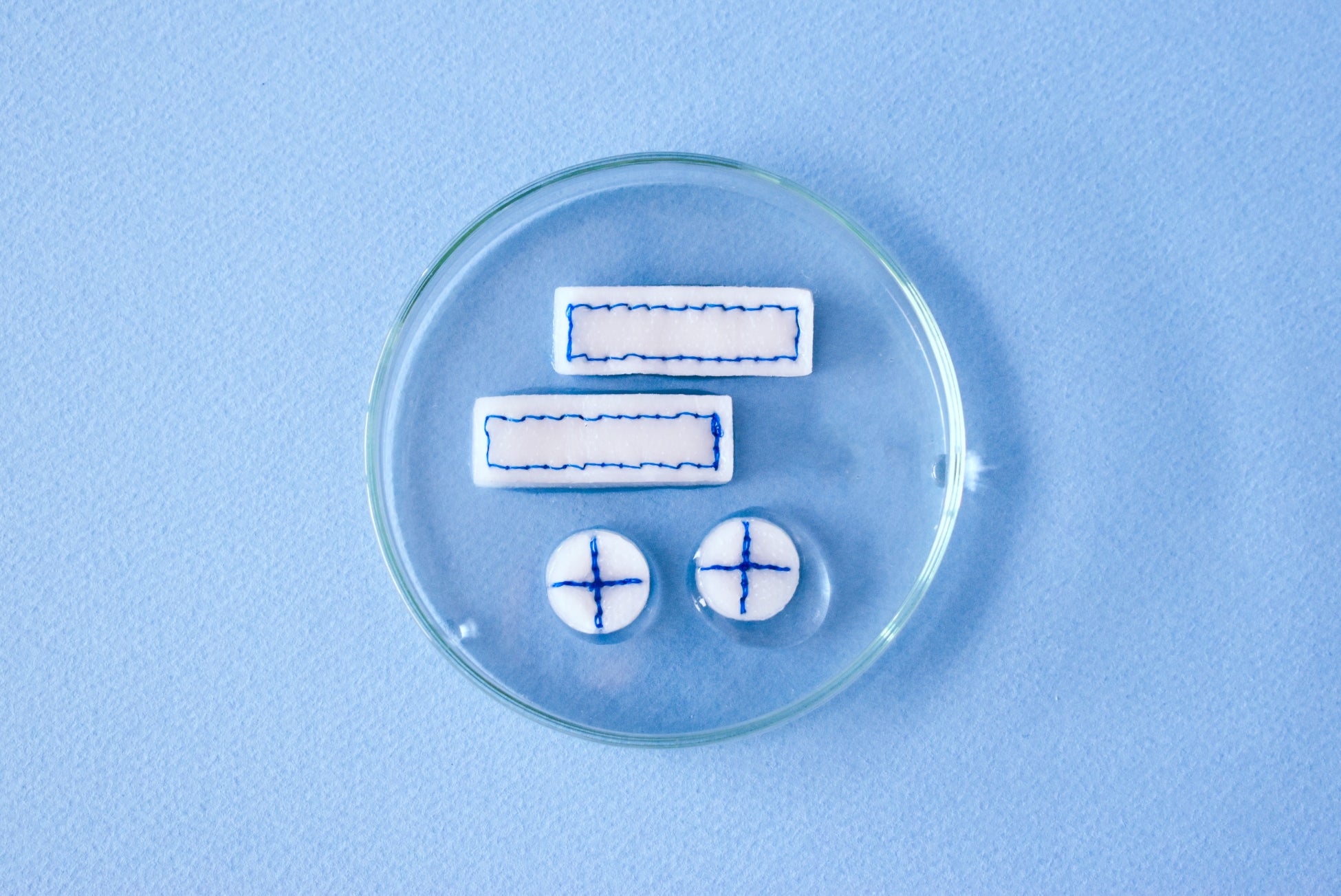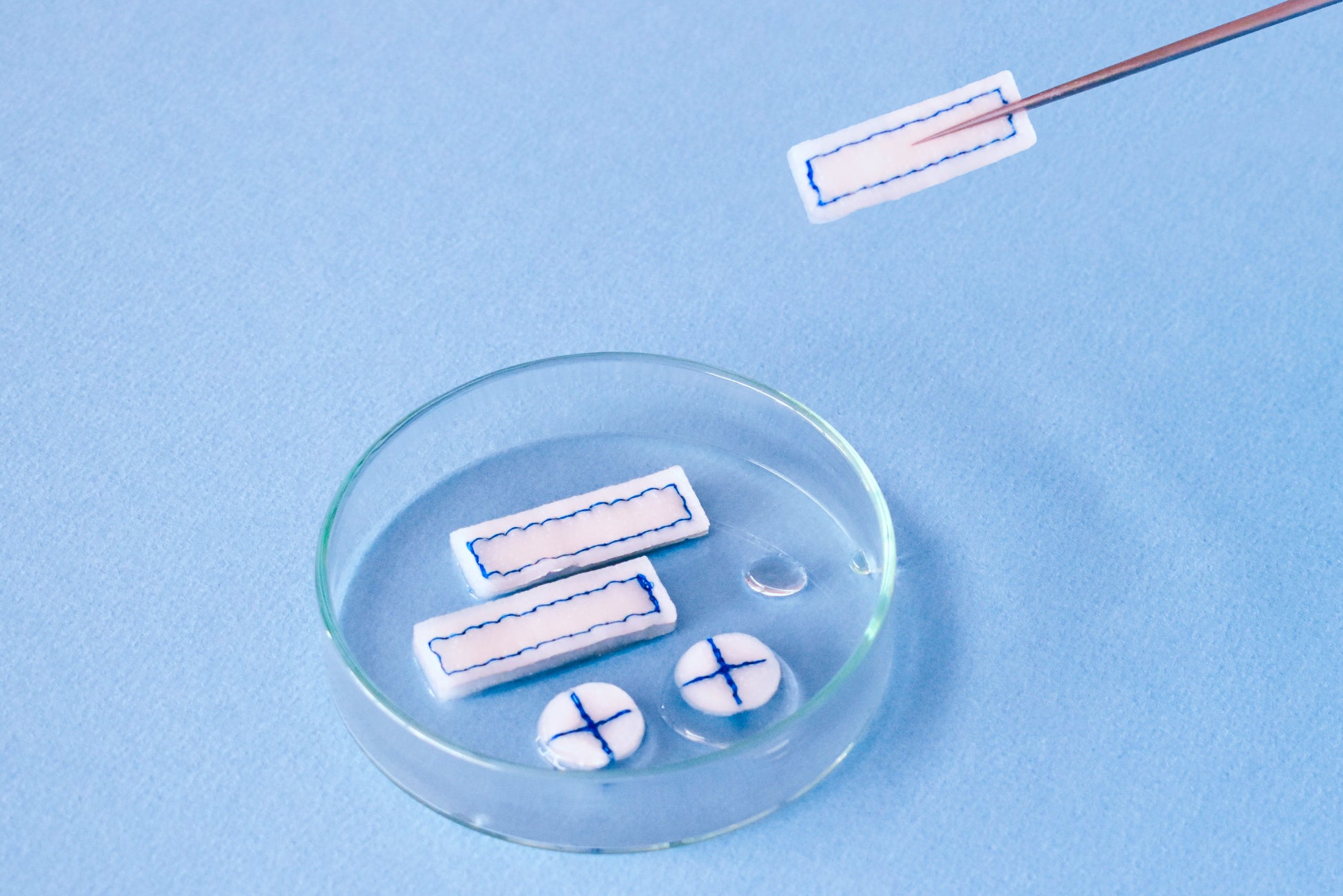レーザー光を照射中にシートが乾いて組織とくっつくと、シートをはがす際に組織を傷つける可能性があります。PDTシートIIは多孔質な素材を採用し、組織にくっつきにくくなっています。