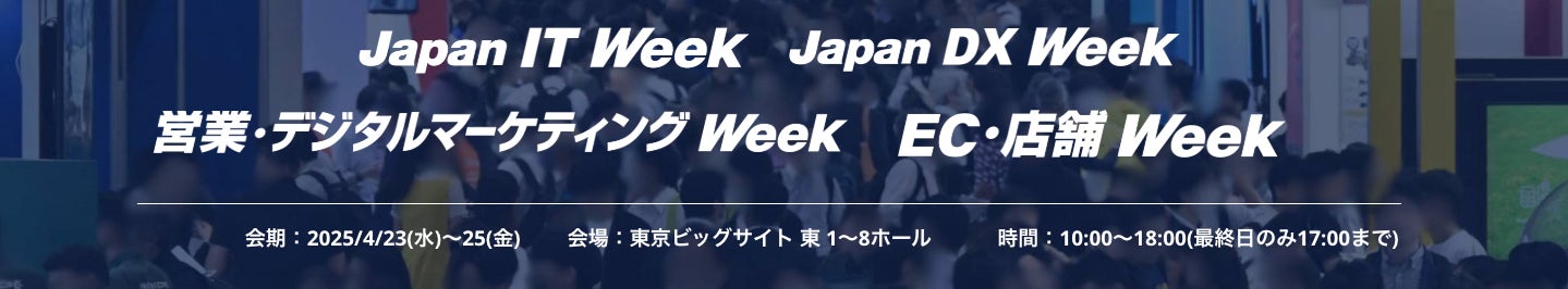 また、「Japan IT Week」「Japan DX Week」「EC・店舗 Week」も同時開催。IT、DX、AI、営業、マーケティング、EC・店舗運営にまつわる最新情報を入手できます。幅広くトレンドを網羅することができる絶好の場です。