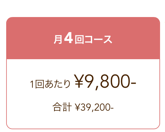 1回あたり ¥9,800-(合計 ¥39,200-/月) |