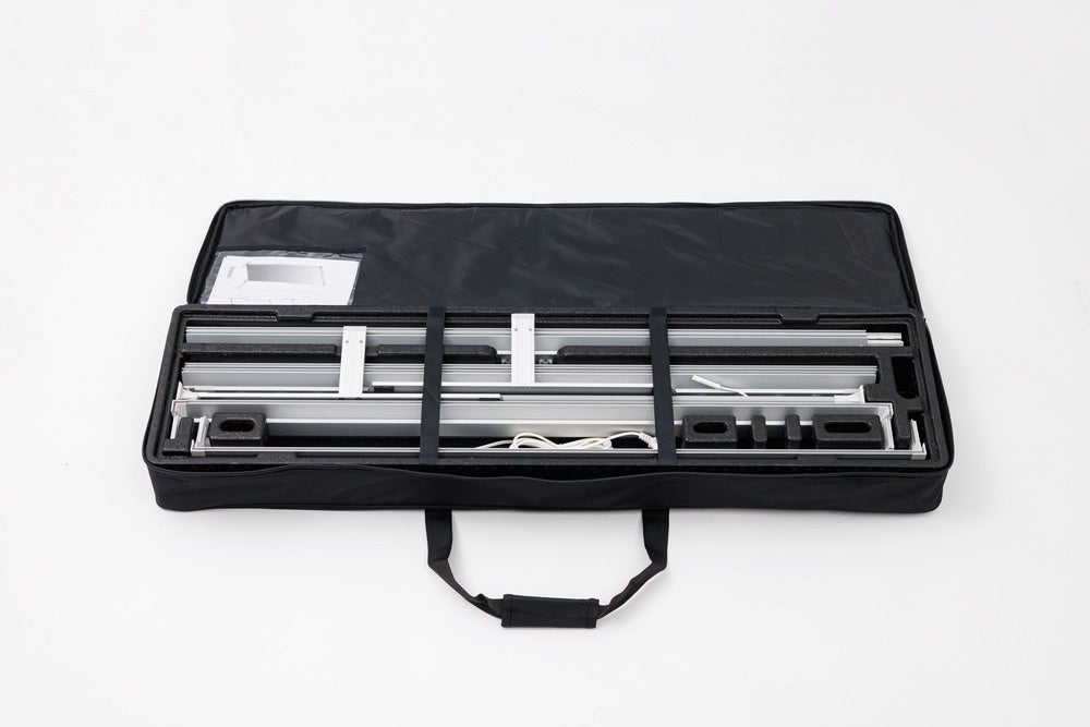 専用バッグがついていますので、持ち運びが簡単です。大型トラックを手配しなくても、バッグ一つで展示会場に向かえます。