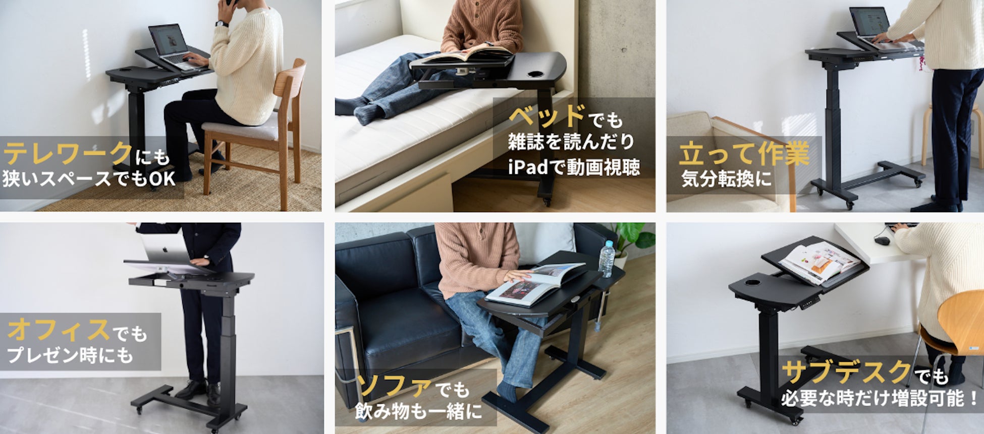 電動昇降デスクを販売した6年間の経験から、通常のデスクの場合、約50%以上の利用者が昇降機能を使わなくなる傾向があります。しかし、さまざまなシチュエーションで使用されるサイドデスクでは、昇降機能の必要性が高まりますが、電源コードを接続したままだと、なにかと不便です。6年以上の取引関係を続けている、信頼できる工場と協力して設計から開発まで行い、そんな問題を解決したバッテリー式ワイヤレス電動昇降サイドデスクを開発しました。