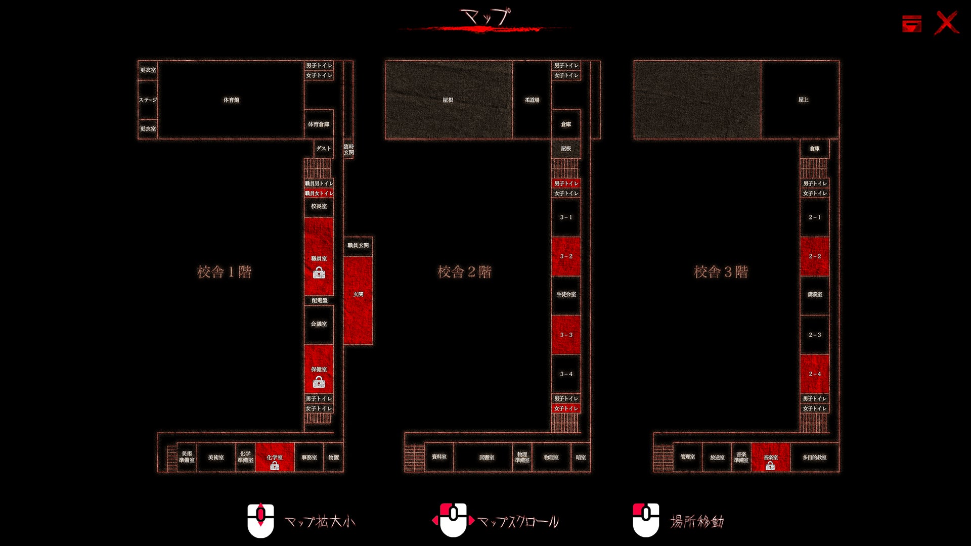 ・各教室を探索し、ヒントやアイテムを手に入れつつストーリーを進行していく脱出ゲームです