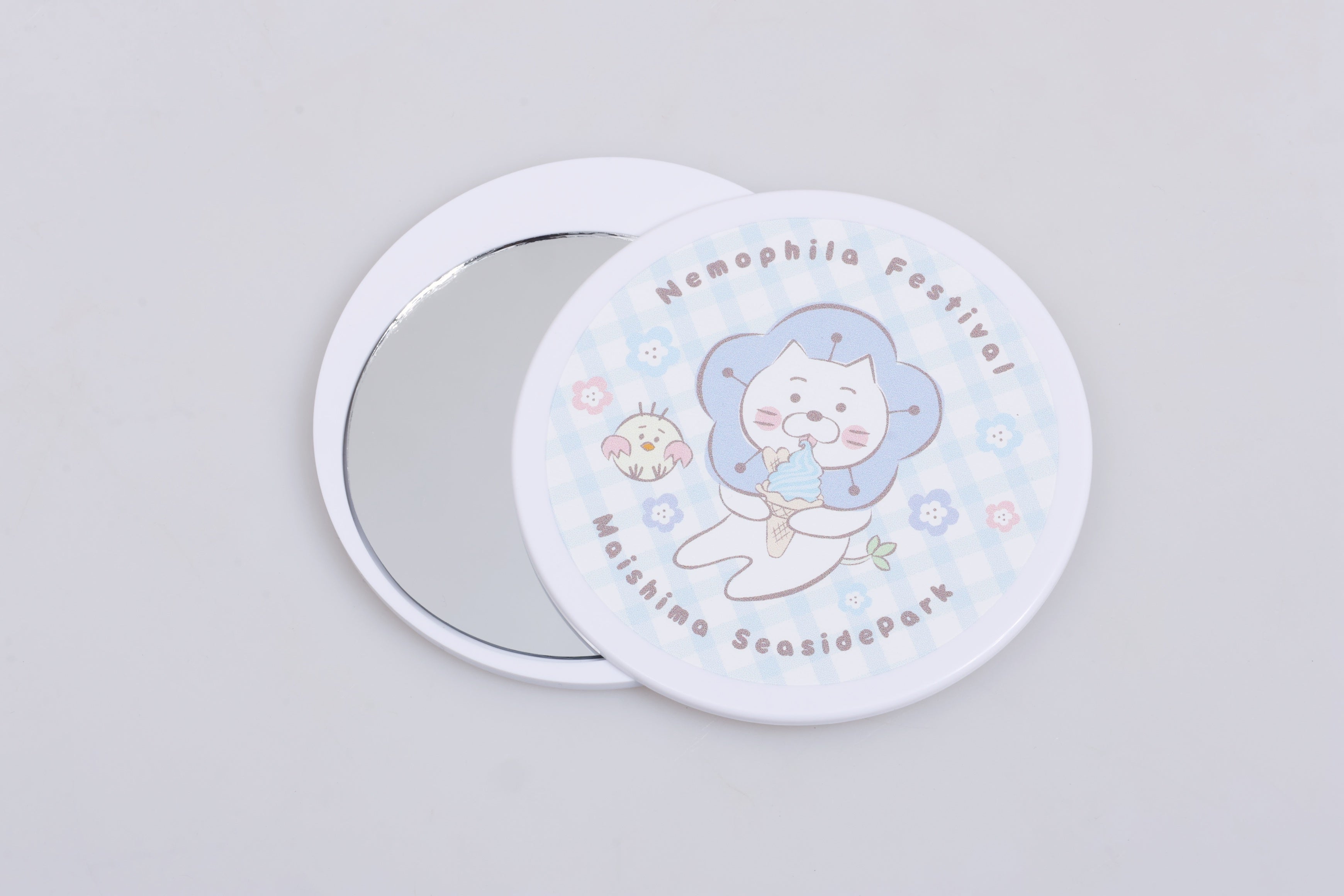 園内の「ネモにゃんショップ」では、青いソフトクリーム「ブルーアイ」の他、園内のネモフィラからミツバチが採取した「ネモフィラはちみつ」や「ネモにゃんのベビーカステラ」が人気です。また、ネモにゃんのお箸&箸置きや手鏡など、オリジナルグッズも多数取り揃えています。