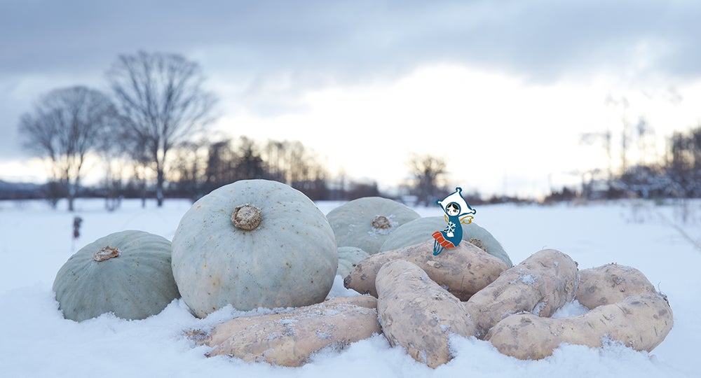 白いカボチャ(雪化粧)や白いさつまいも(黄金千貫)