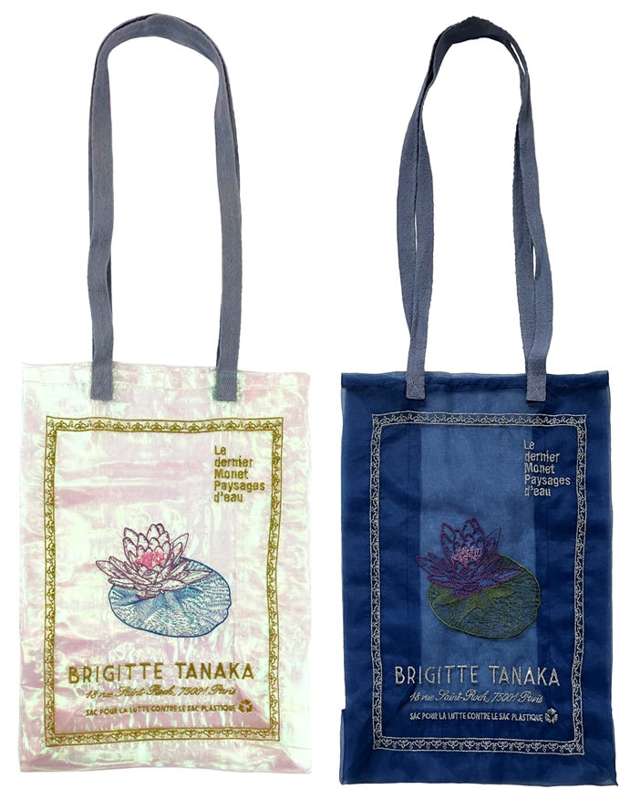 日本とフランス、アンティークとコンテンポラリーといった二つの相反することをテーマにデザインをしているブリジットタナカ。モネの〈睡蓮〉のイメージを刺繍で表現した、上品な仕上がりのオーガンジーバッグです。