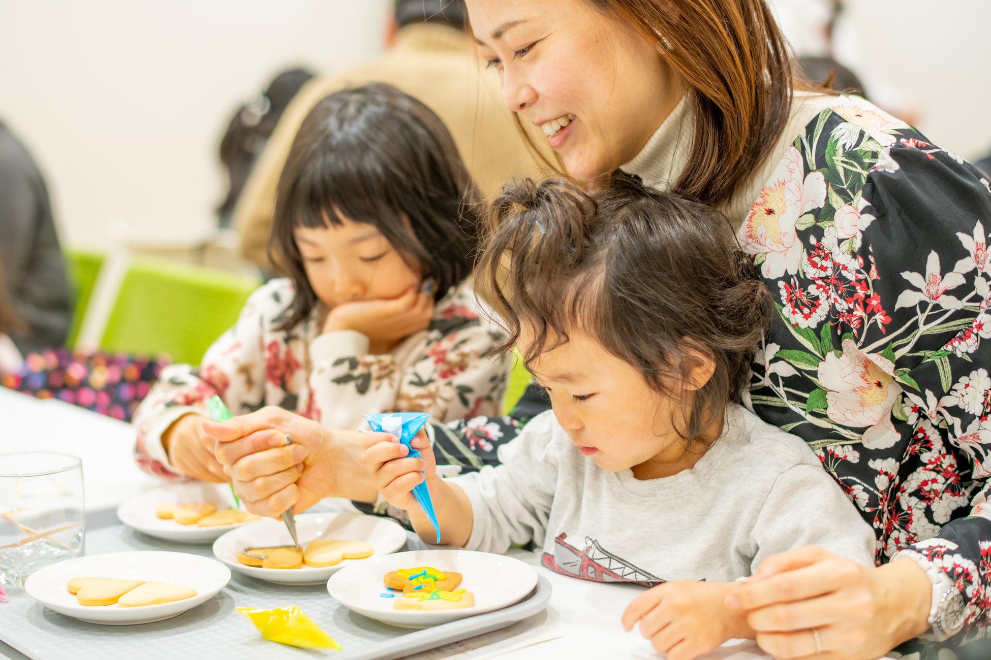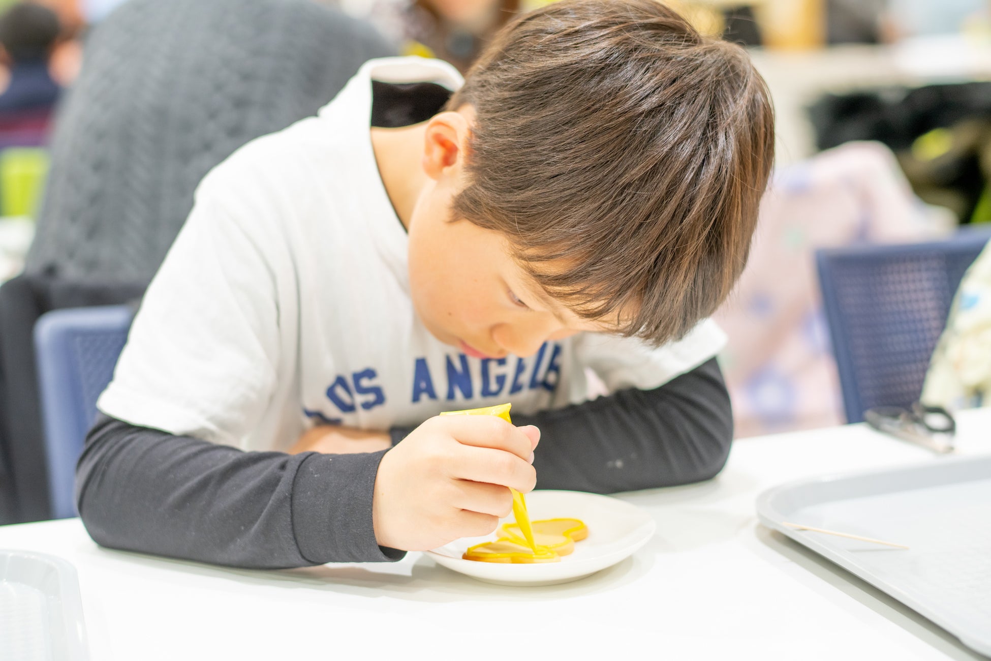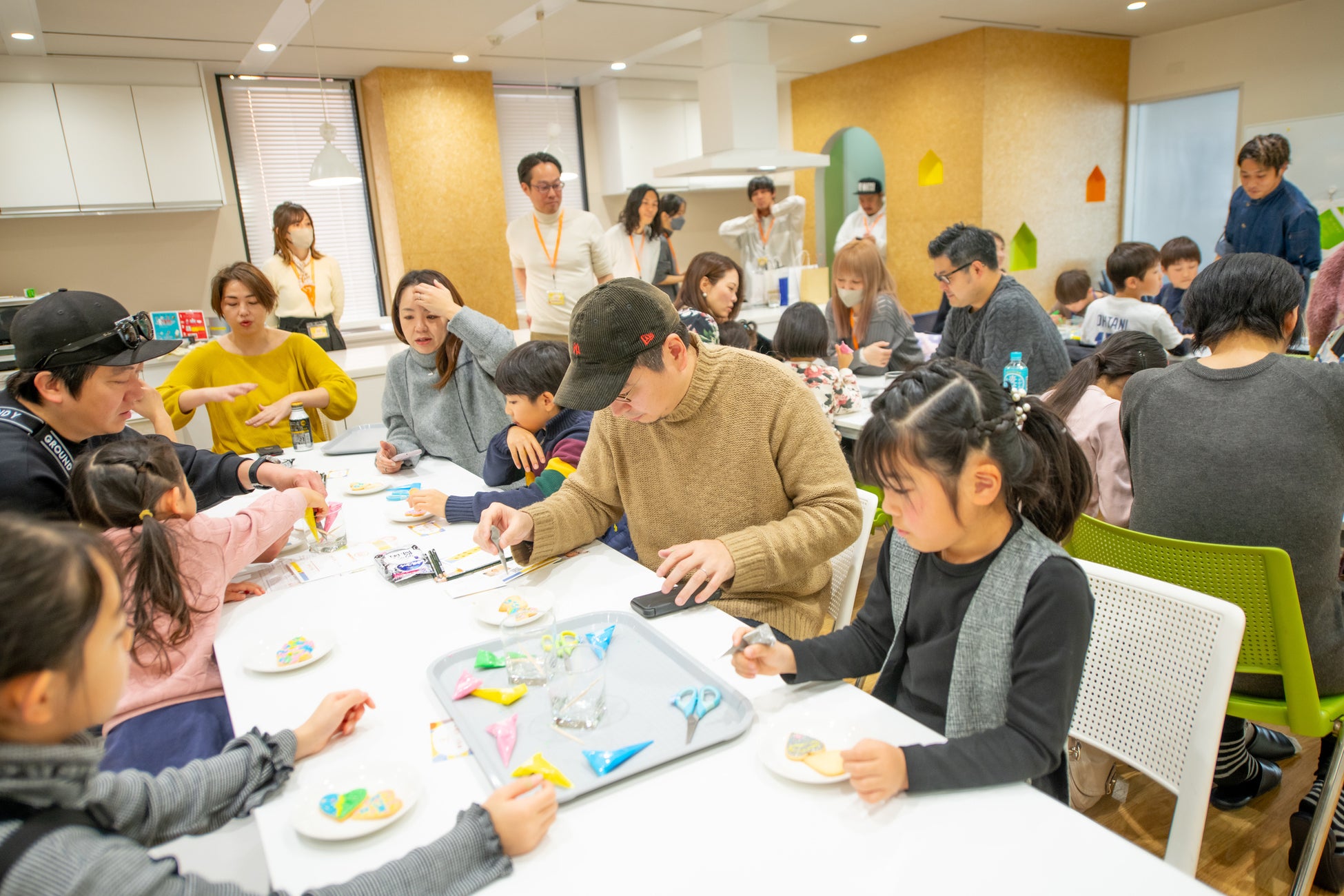 初めて見るアイシングに早速手を伸ばし、一斉に子どもたちが目の前のクッキーに集中するのが大人たちにも伝わります。会場も和やかな雰囲気に。