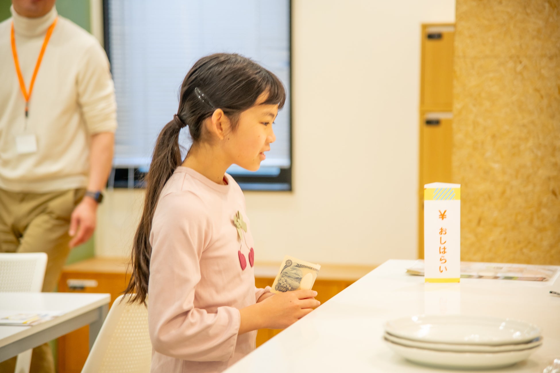 電子決済は大変便利ですが、実際にお金を手にして相手に渡すという実体験から学ぶことも多いと考えるガチスキ!では、参加する子どもたちに自ら現金での支払いを経験してもらいました。