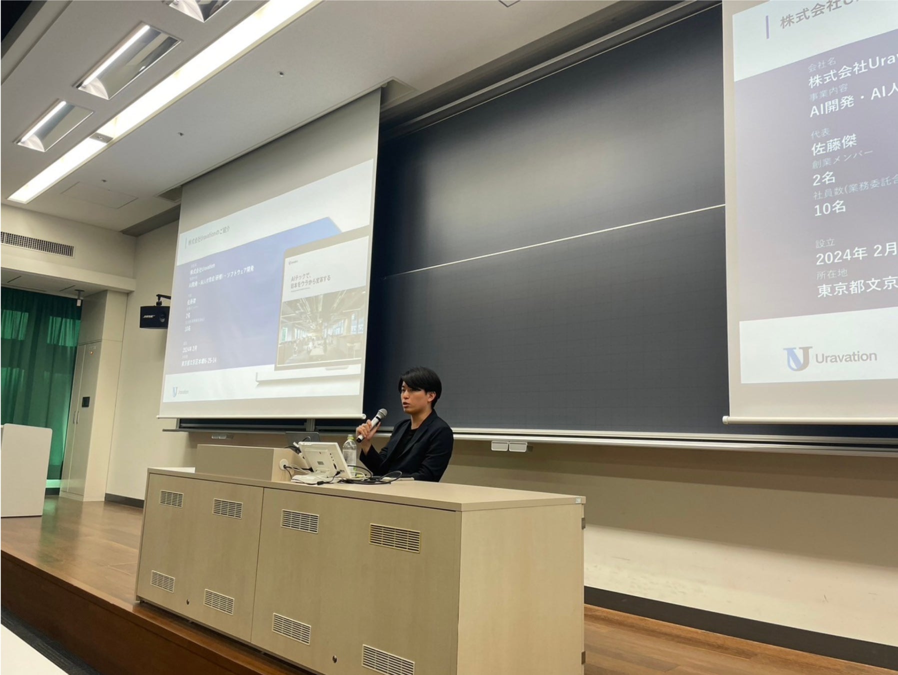 株式会社Uravation(本社:東京都文京区、代表取締役:佐藤 傑)は、株式会社TENHO(本社:東京都渋谷区、代表取締役:田村允)との共同で、2024年12月12日(日)、青山学院大学で開催された事業戦略論の講義にゲスト講師として登壇しました。「学生起業と生成AI」というテーマのもと、最新のAIツールがもたらすビジネス上の変化や、大学生ならではの視点を活かした起業の可能性について、学生たちと一緒に考える機会を設けました。