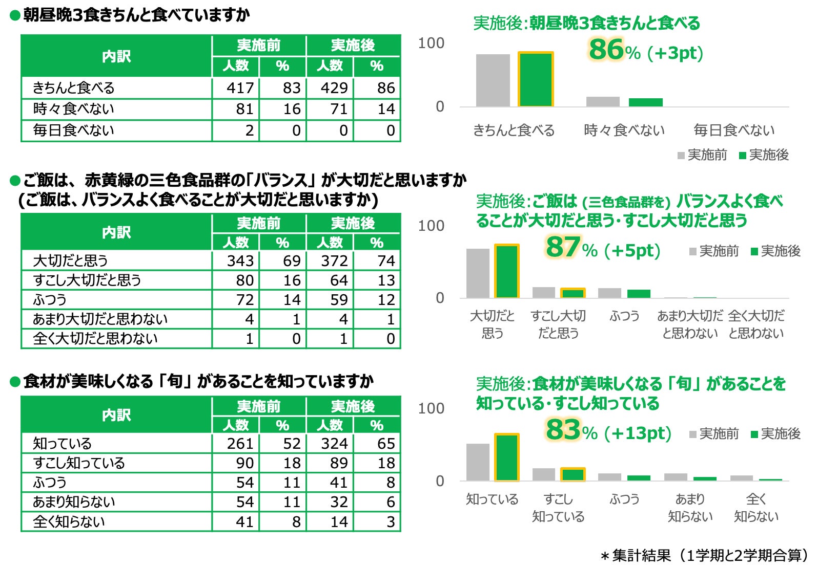 『もぐもぐタウン』体験後については、体験する前よりも食事のバランスへの意識や、食材の旬についての知識が向上。食育を支援するツールとして効果に期待。