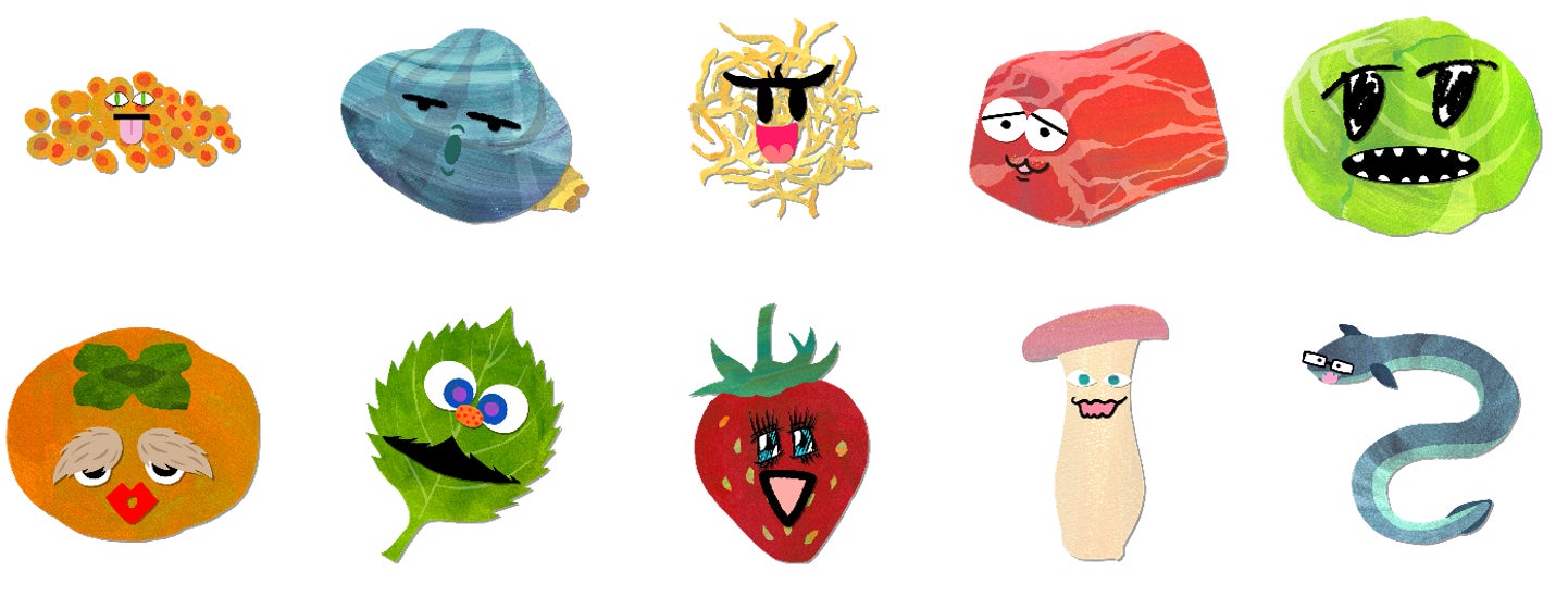 「もぐみん」は、ごはんにひっそりかくれている食材のキャラクターで、最大100種の食材から生まれていて、食材×顔パーツの組み合わせだと、その数なんと最大25万種類。