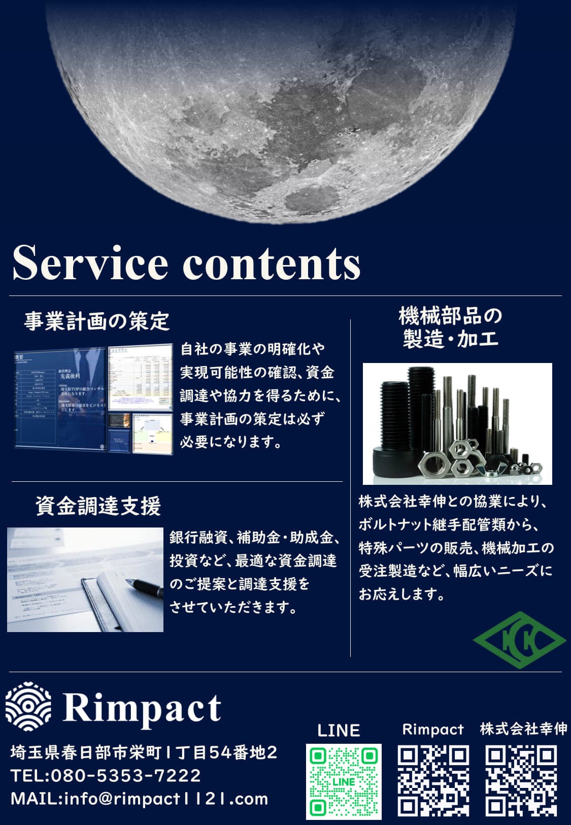事業承継支援や新規事業開発、経営支援で実績を持つ合同会社Rimpact(埼玉県春日部市、代表:中西将太)は、一般機械部品の製造・加工・供給をおこなう株式会社幸伸(大阪府)と協業し、2024年4月13日より「宇宙ビジネス支援事業」を新たに展開いたします。