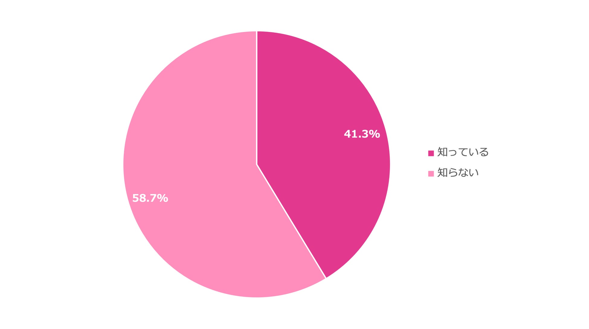最後に、産前の整体ケアがあることを知っているか聞いたところ、「知っている」41.3%、「知らない」58.7%という結果となり、「知らない」と答え方の方が多いものの、「知っている」と答えた方も4割を超えていました。