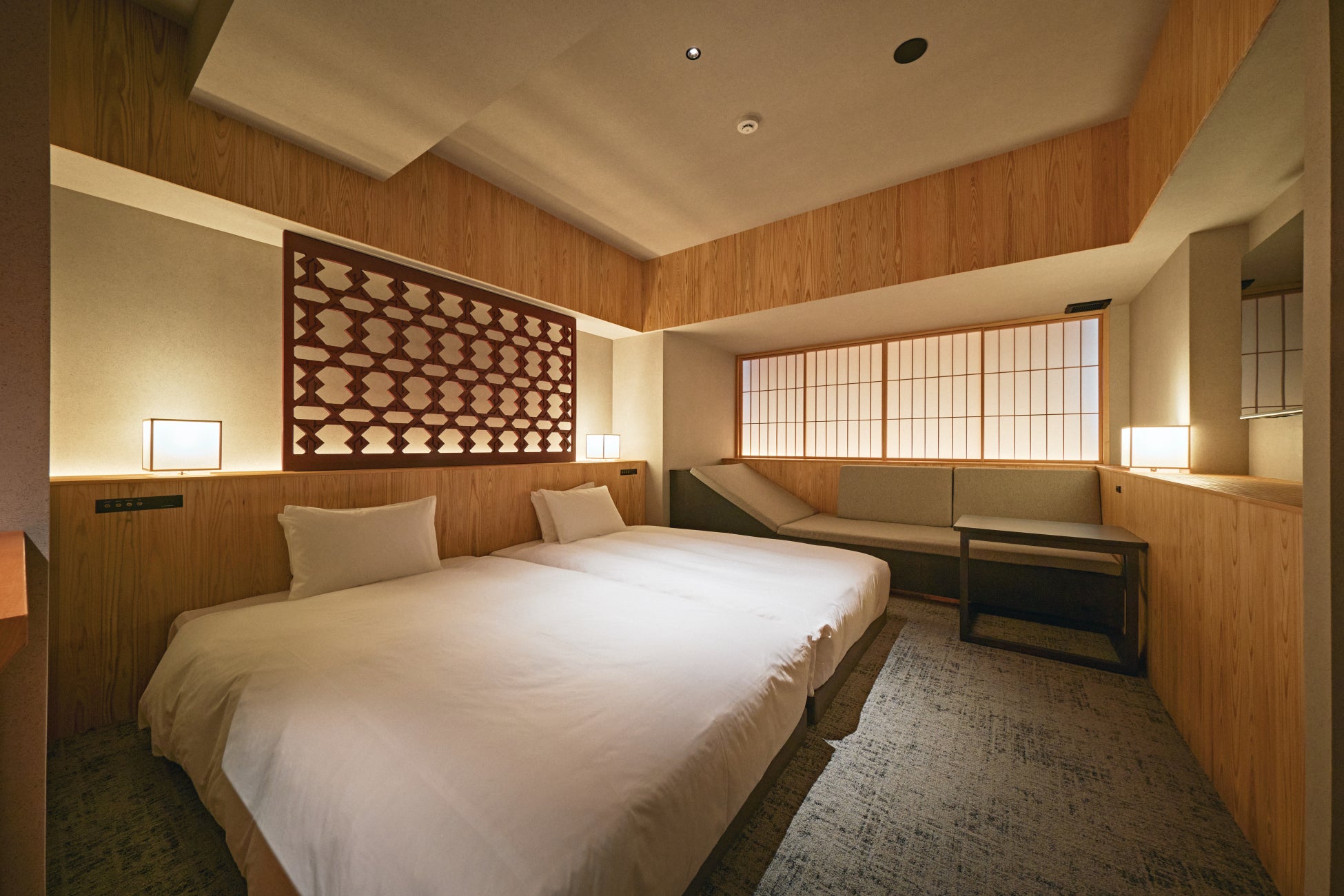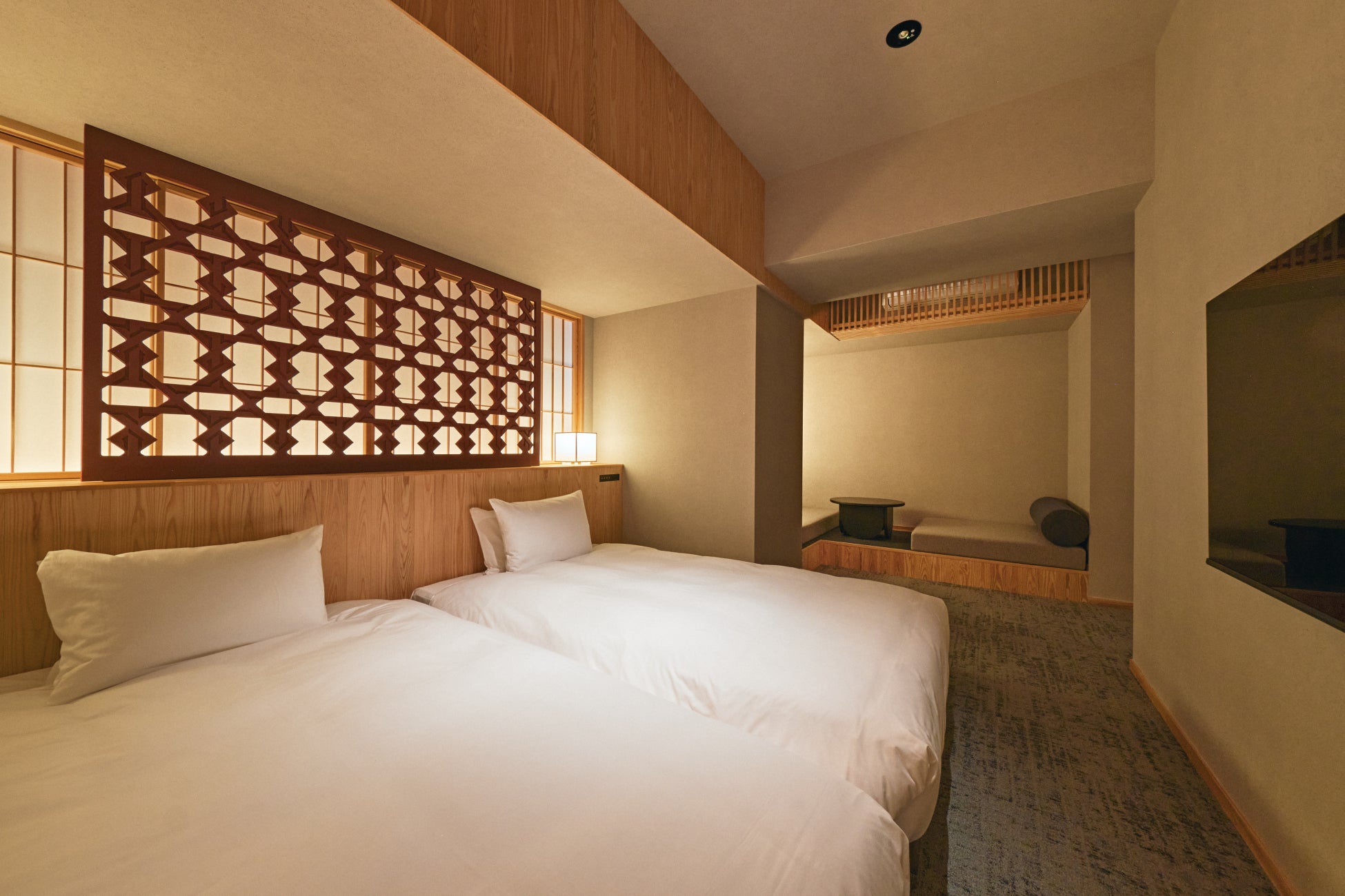 ツイン(全16室)は37㎡の空間に、小上がりスペースがありゆったりとお部屋でおこもりできる空間となっています。