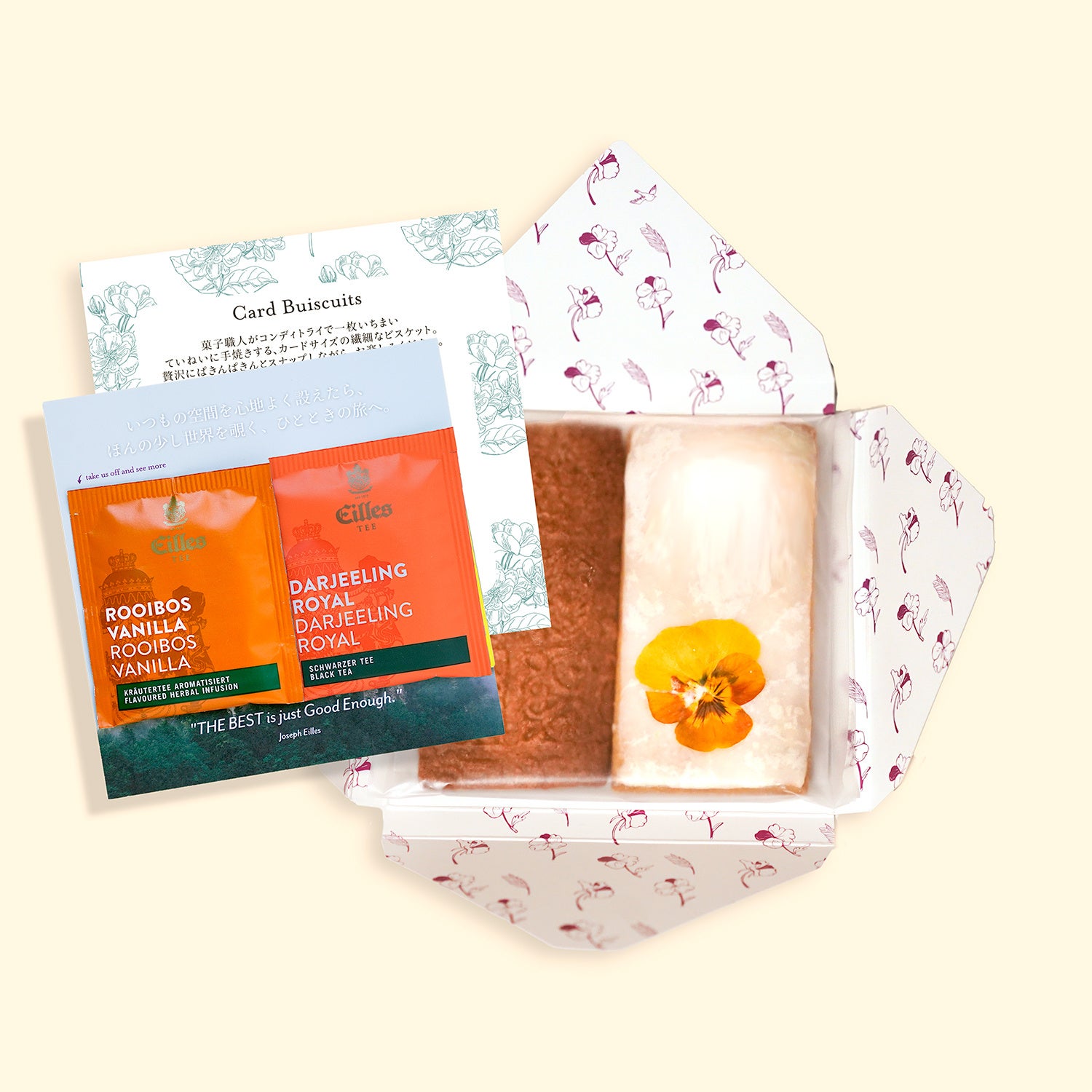 封筒をひらくと、ほんの30分でも日常から切り離される時間を提供できるパッケージを目指しています。美しいお菓子だけでなく、音楽やアート、紅茶の楽しみ方やお菓子のストーリーなど心満たされる仕掛けがちいさな封筒に詰まっています。