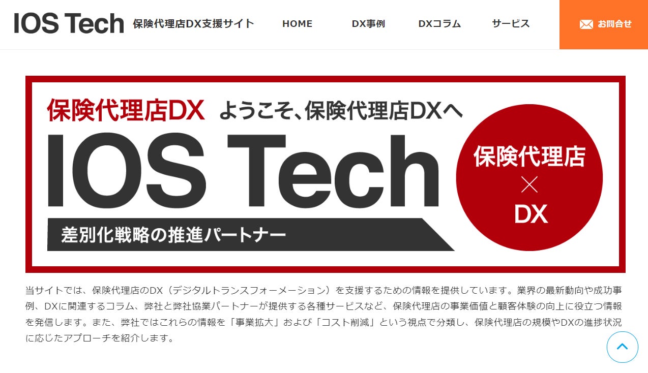 伊藤忠オリコ保険サービス株式会社(本社:東京都港区、代表取締役社長:森義治、以下「伊藤忠オリコ保険サービス」)は、保険代理店のDX(デジタルトランスフォーメーション)を支援するための情報提供サイト“IOS Tech”(URL:https://www.itochuiis.co.jp/dx/)を公開しました。