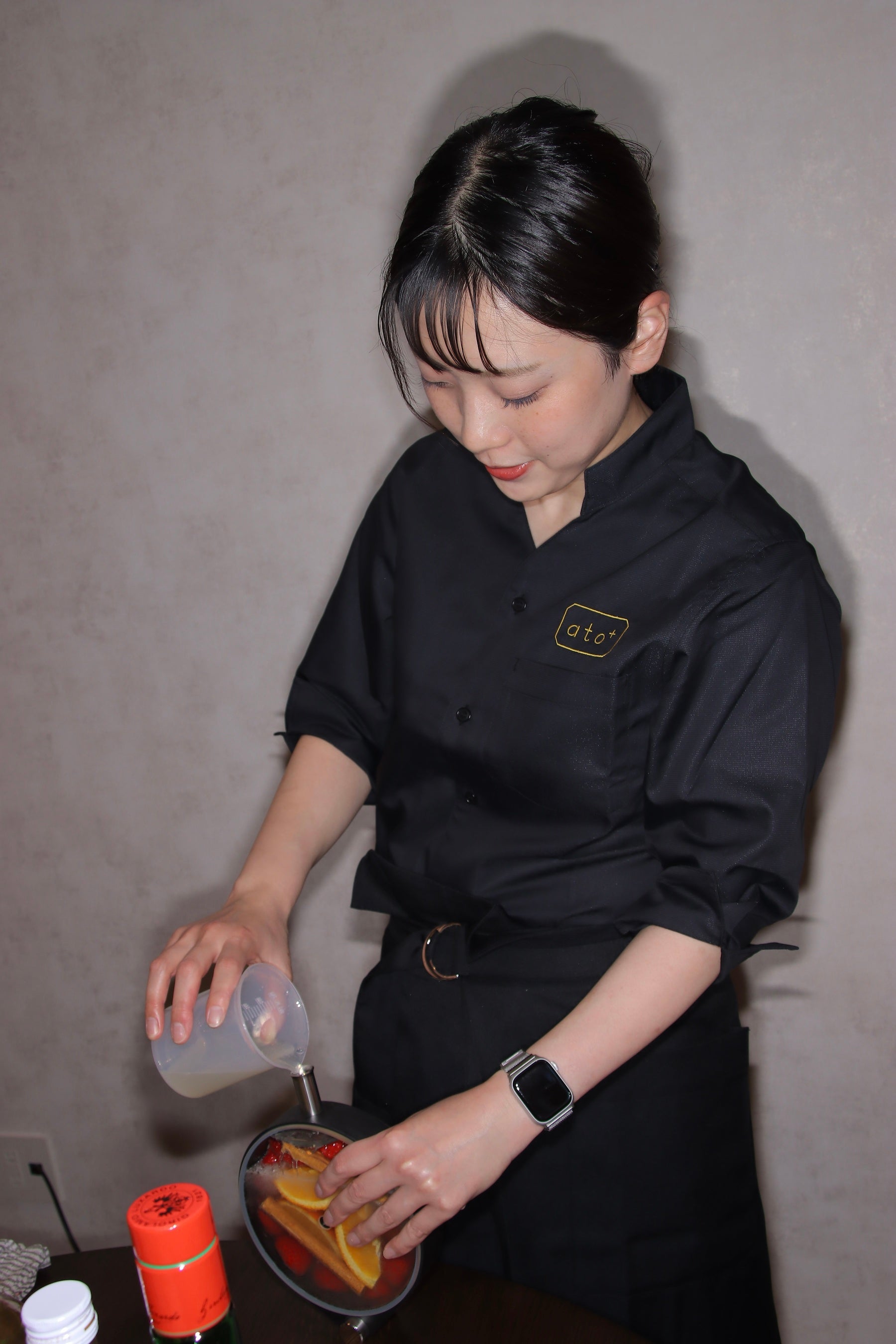 バーのカクテルは東京の表参道にあるバー『THE STANDARD』が監修しており、『THE STANDARD』のオーナーは都内の星付きレストランのソムリエを経て渡米し、NYの最先端のカクテルと出会い独立された方です。東京でこのカクテルと出会い、ぜひato+でもこのカクテルを提供したいと思い、シェフパティシエが『THE STANDARD』で一から鍛錬しました。今まで飲んだことのないカクテルと素敵な空間で1日の締めくくりを楽しんでいただけることでしょう。