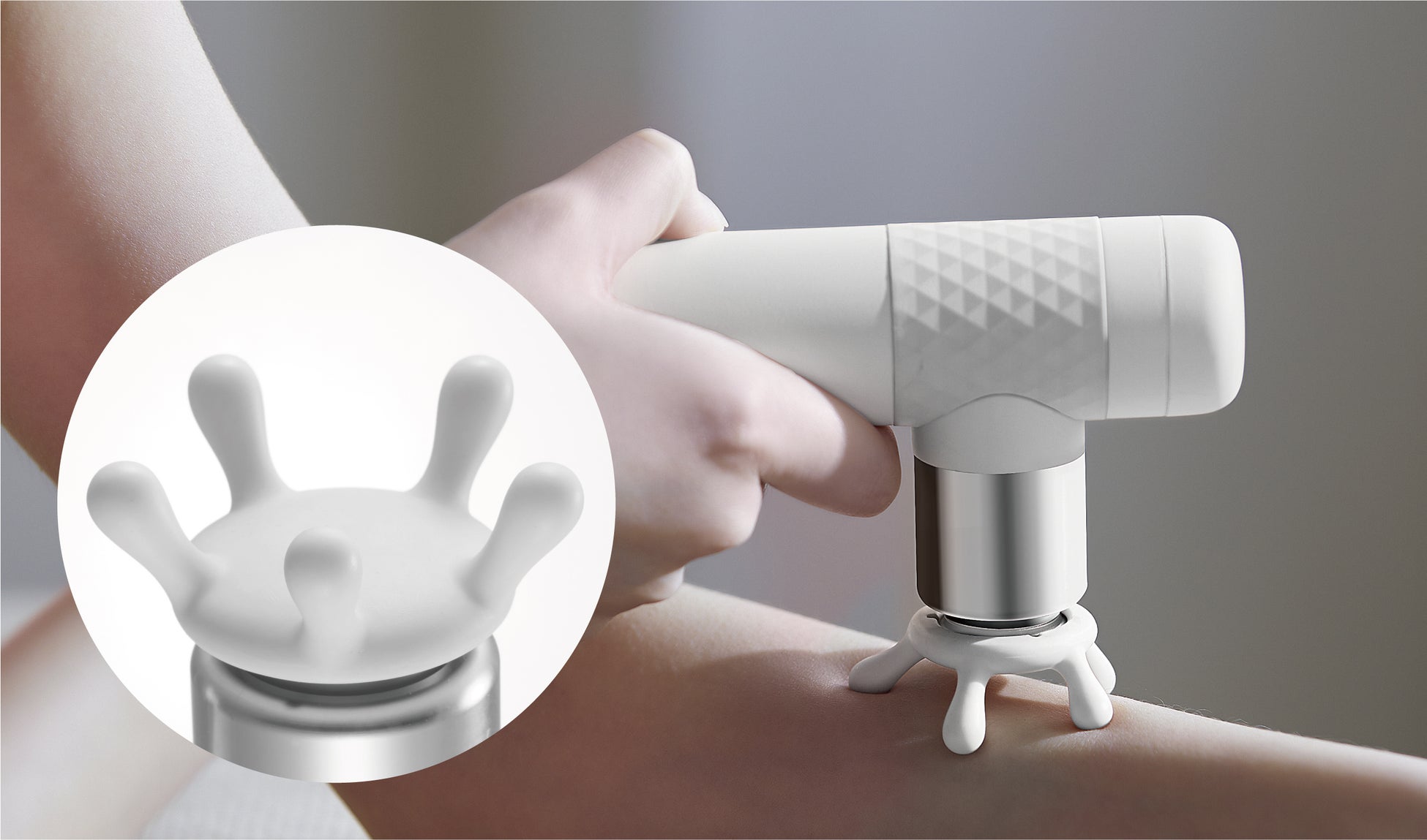 やさしく振動が伝わるフィリップ独自のフィンガーアタッチメント。ソフトなシリコン製の5本指パーツが、振動を優しく伝え、全身のボディケアやリラクゼーションに使用することができます。