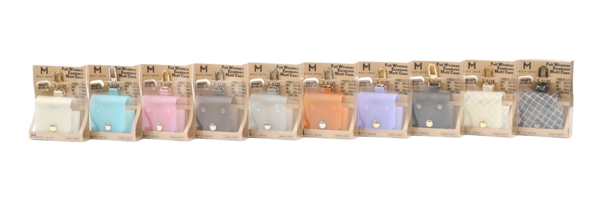 “すりガラスのような素材の美しさ”を楽しむアップサイクルブランド『MISTY LAYER (ミスティー・レイヤー)』から新アイテムが登場。【機種を選ばず使えるワイヤレスイヤホン用ケース】をリリースいたしました。カラーは全10色。様々なワイヤレスイヤホンが収納できる事を想定し、サイズは<S、M、L>の3種をご用意しました。