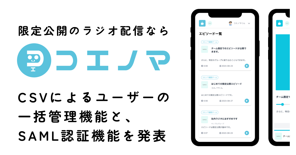 コエノマがCSVファイルによるユーザーの一括管理機能をリリース!さらにSAML2.0によるSSO導入で、ユーザー管理がより安全、便利に