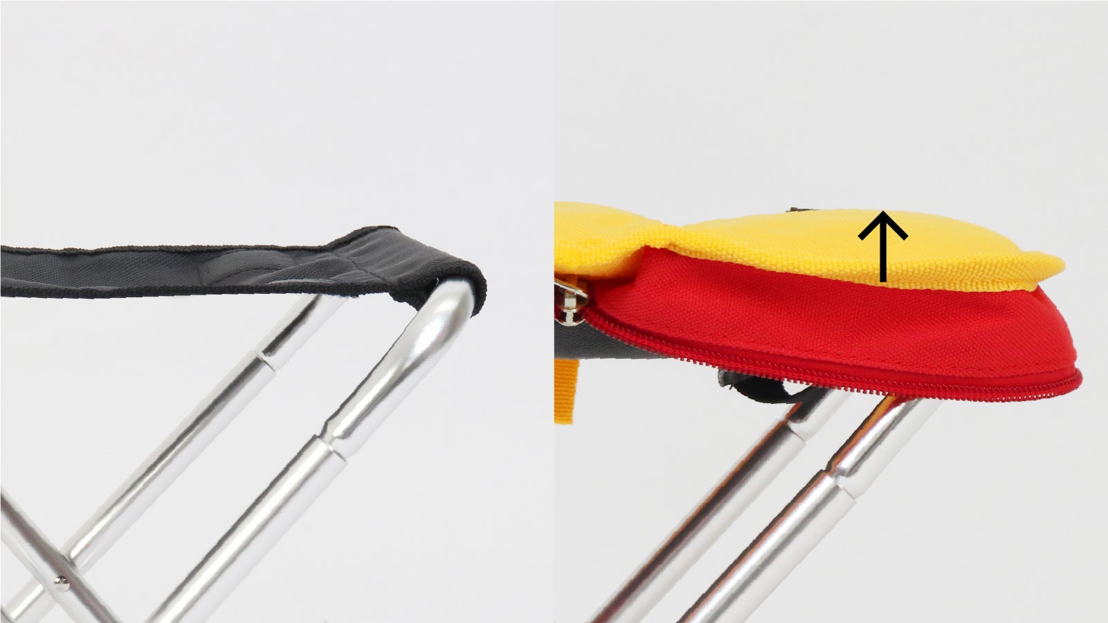一般的な折りたたみチェアは座面が薄く、突っ張るのでお尻が痛くなりがち。