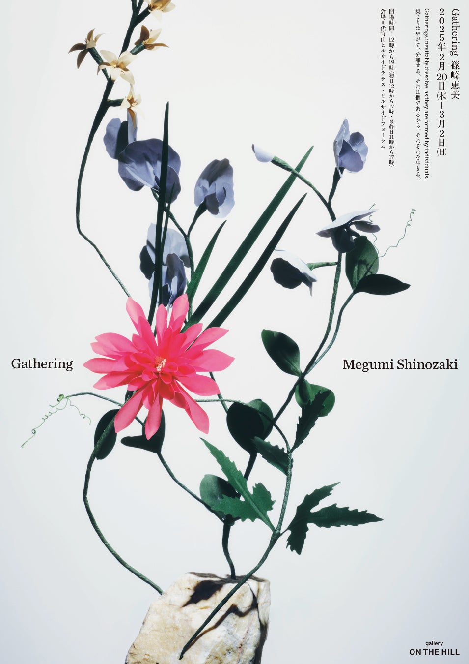 (一社)オンザヒルが運営するアートギャラリー・gallery ON THE HILL(東京代官山)は、 2025年2月20日(木)から3月2日(日)まで、 代官山ヒルサイドテラス・ヒルサイドフォーラムにて、東京を拠点に活動するフラワーアーティスト 篠崎恵美による個展「Gathering」を開催します。