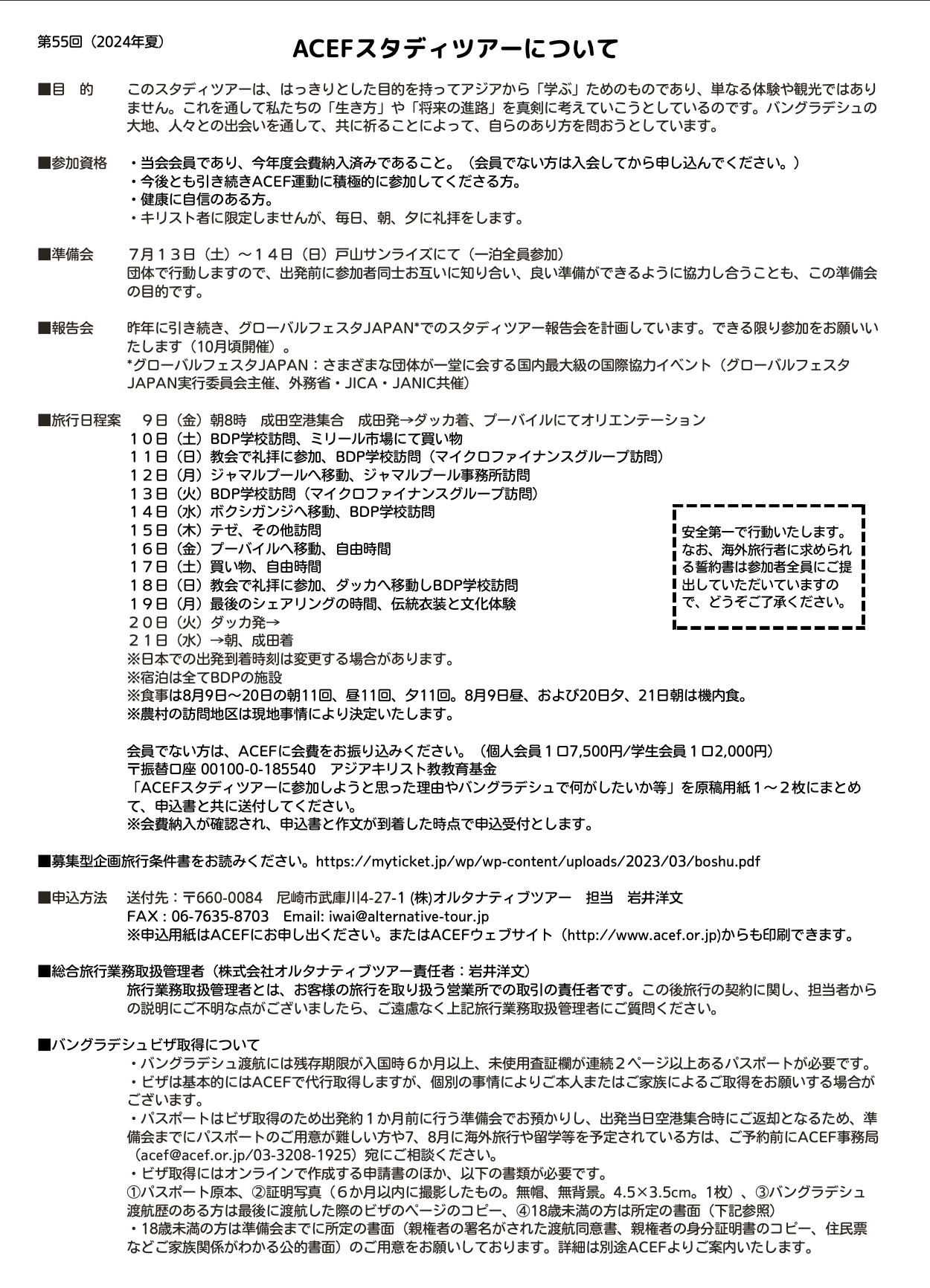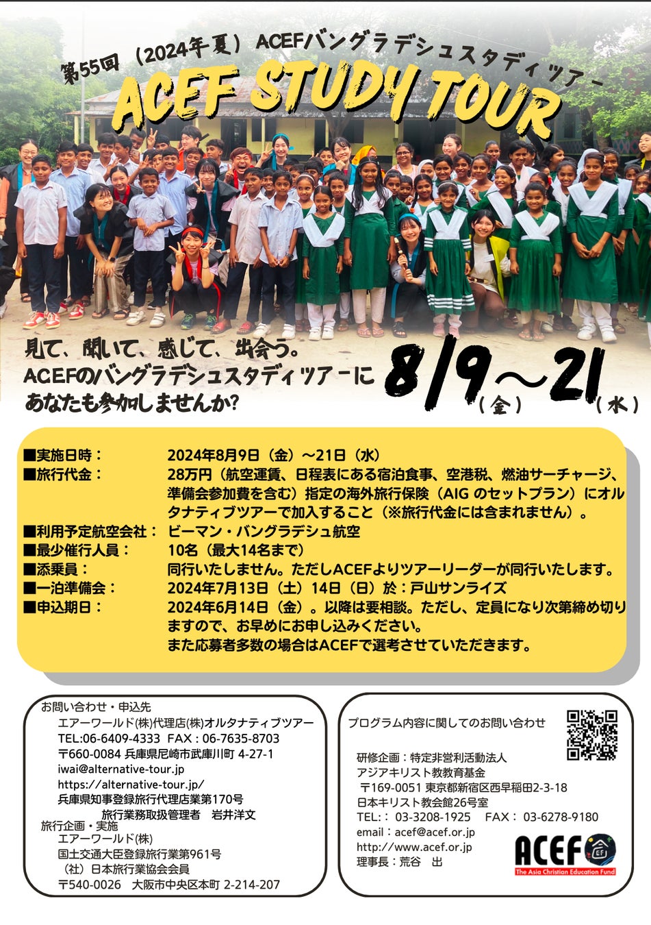 バングラデシュの大地、人々との出会いを通してアジアから学び、私たちの「生き方」や「将来の進路」を真剣に考えるACEFのスタディツアー。ぜひこの機会に共にバングラデシュに訪れませんか?