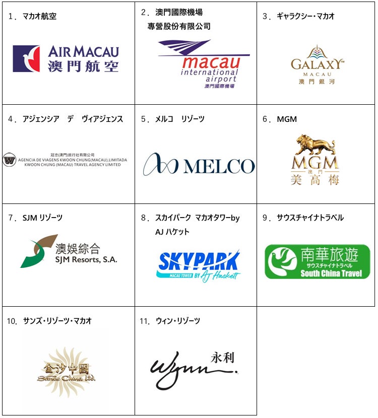 今回、マカオ政府観光局とともに本イベントに出展するのは、次の事業者です。
