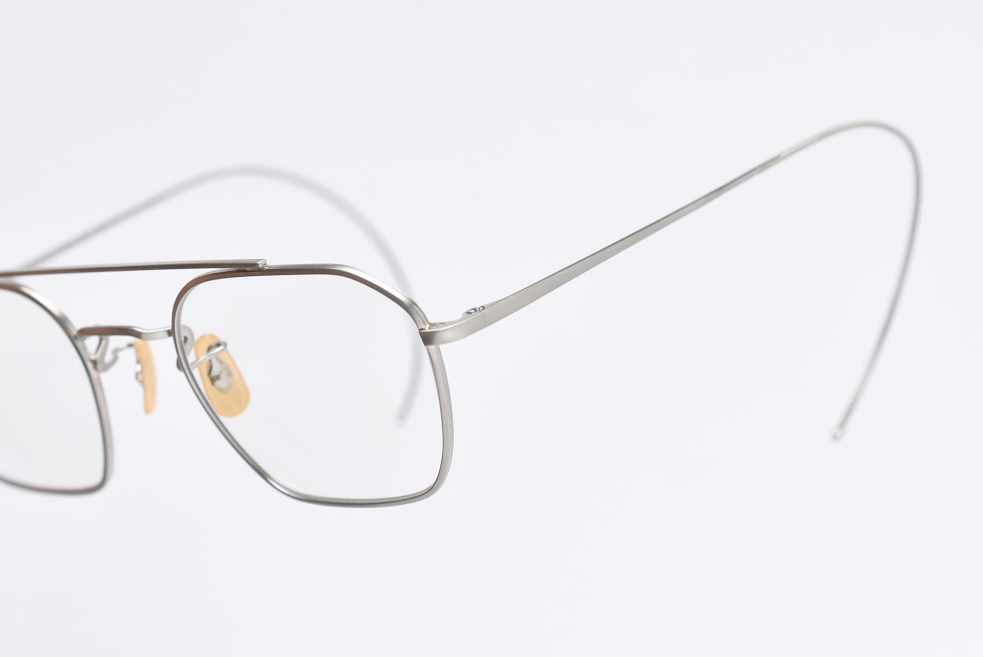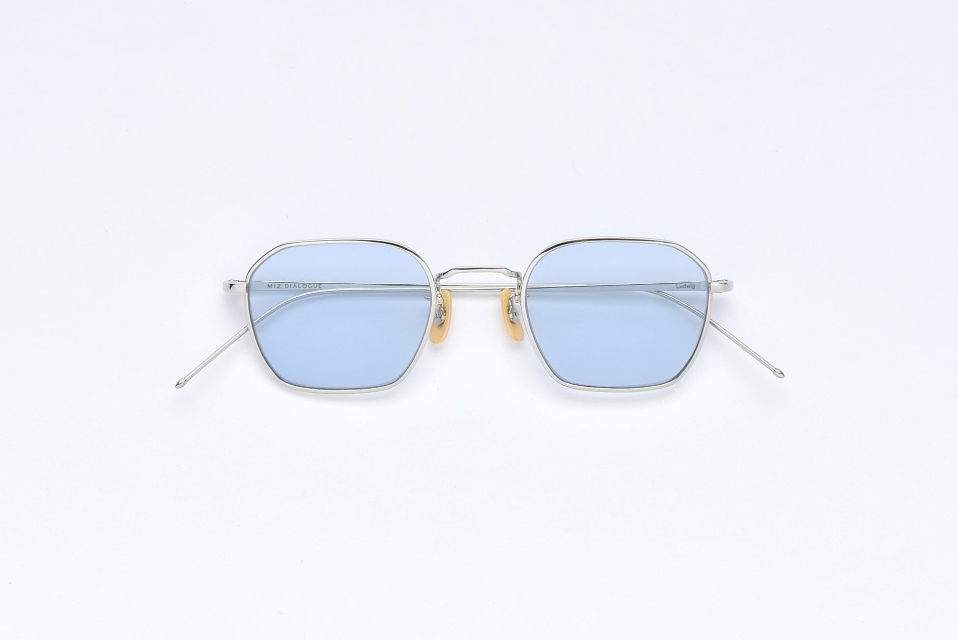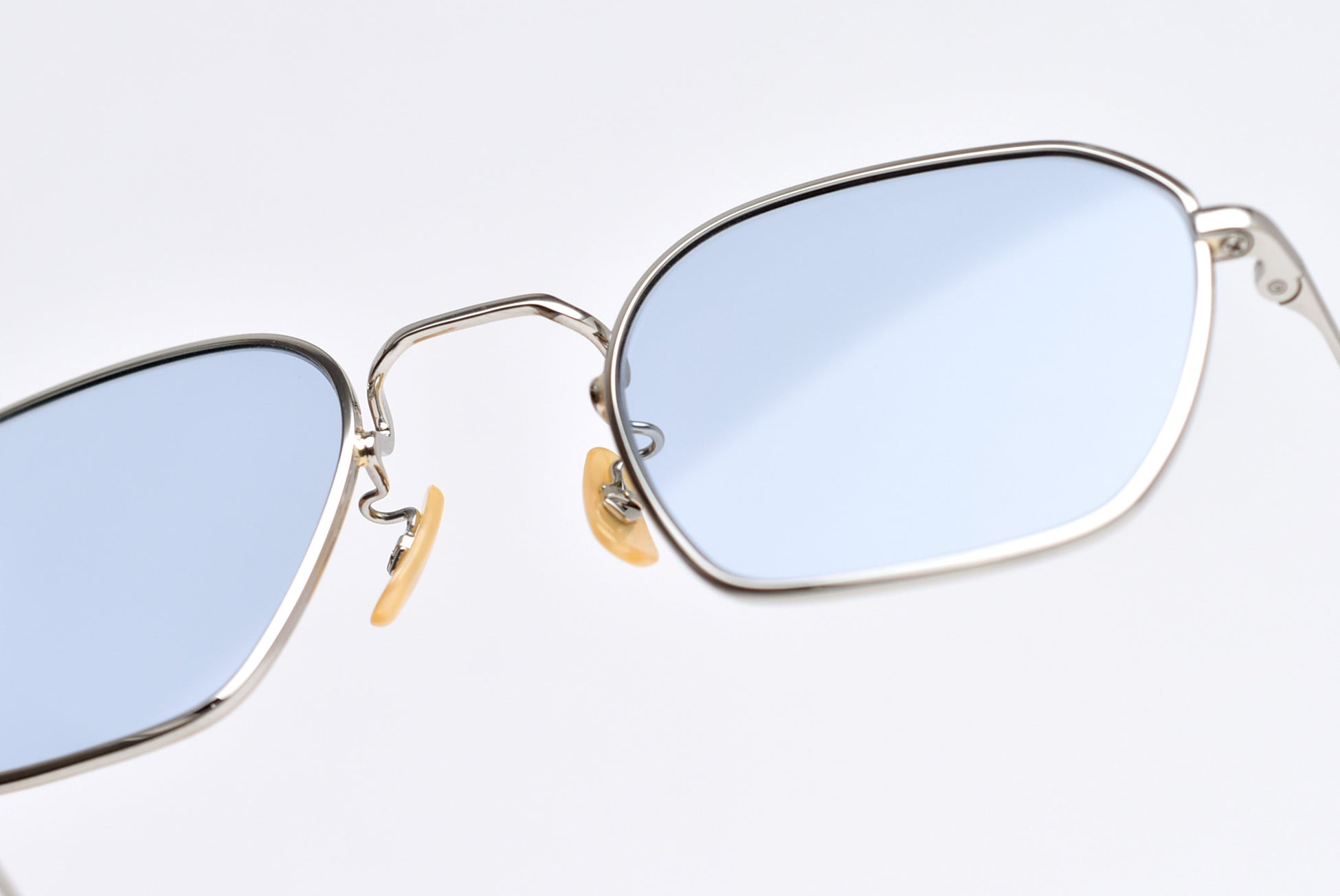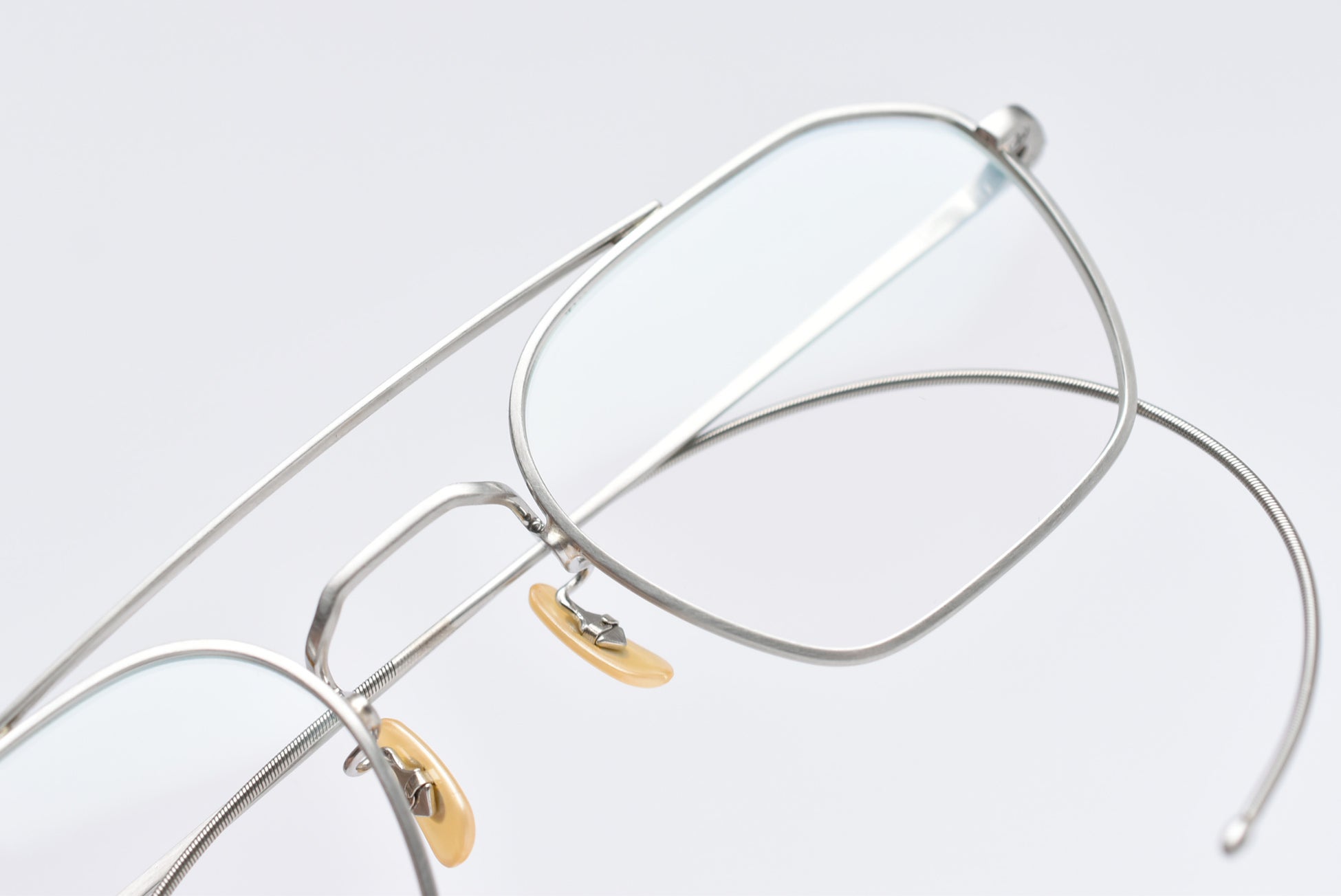 ニューベースモデル『Ludwig』でカスタマイズパターンを考えてみました。昨年末より加わった「ツーブリッジ加工」(フロントリム上部にバーブリッジを溶接するカスタマイズ)や「シャーリング加工」(サンプラチナの表面をヘアライン状にする半光沢仕上げにするカスタマイズ)などを施したり、オーエムジー株式会社製の色ガラスレンズから新たに「LB-AQUA」のカラーがラインナップに追加されました。