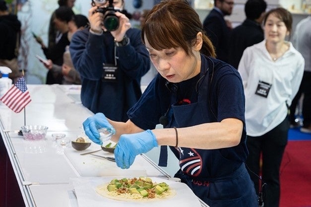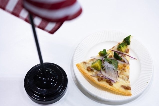 アメリカ大豆の消費拡大には、アメリカ大豆を使った美味しいレシピの工夫が大切です。2023年の「全国納豆鑑評会」で特別賞をダブル受賞した100% SSAP認証付きアメリカ大豆納豆「おちびさん つゆだく」(小杉食品)を使い、モダンアメリカ料理家の石野智子氏がつくってくれたのは「納豆とアボガドと紫玉ねぎのピザ」と「納豆と黒蜜のアイスクリーム」。「納豆を食べ慣れていない海外の人や、納豆がちょっと苦手な日本の子どもたちでも、美味しくいただけるようにしました」と石野シェフ。イベント会場では試食が行われ、「とても美味しいピザ」「アイスに納豆が入っているなんて思えない」と新鮮な味や食感が好評でした。米国大使館農務公使 モーガン・パーキンズ、アメリカ農産物貿易事務所(ATO)のチャンダ・バーク所長も「エクセレント!美味しい。これならアメリカでも普及すると思います」