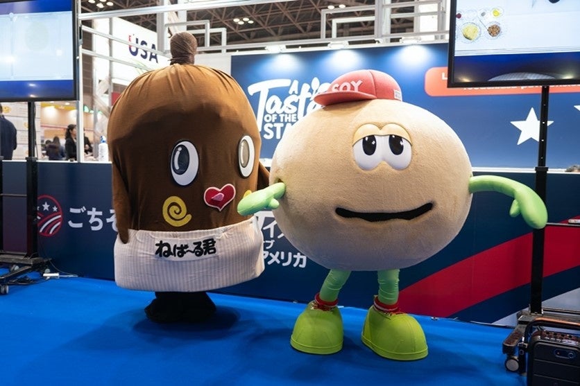 SOY(ソイ)は2024年3月5日、国際食品・飲料展「FOODEX JAPAN 2024」のアメリカパビリオンに初登場しました。全国納豆協同組合連合会(本部:東京都荒川区、通称 納豆連)と共催、アメリカ大使館 農産物貿易事務所の協力を得て、「サステナブルU.S. SOY クッキングイベント with ねば〜る君と新しい仲間」を開催しました。