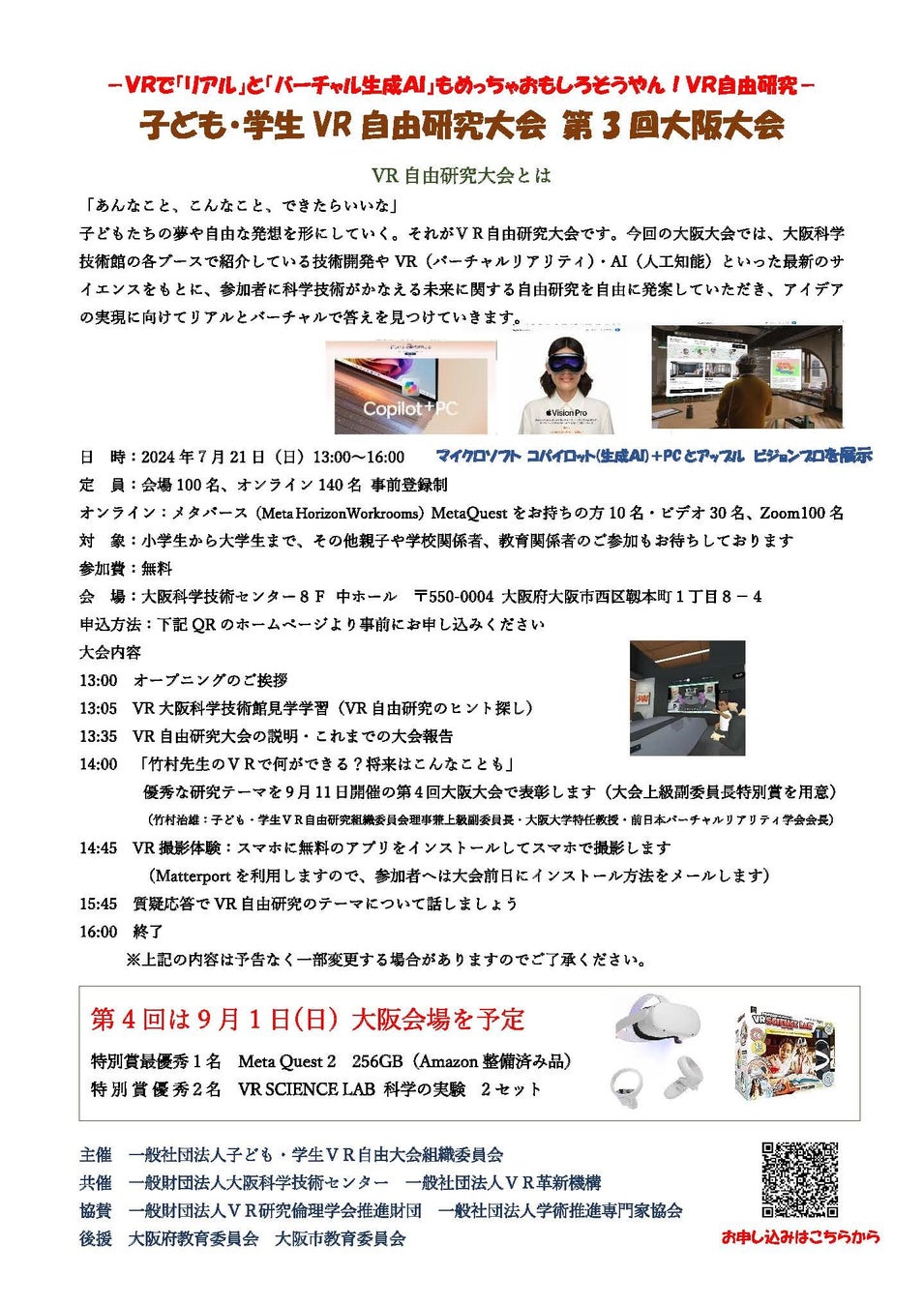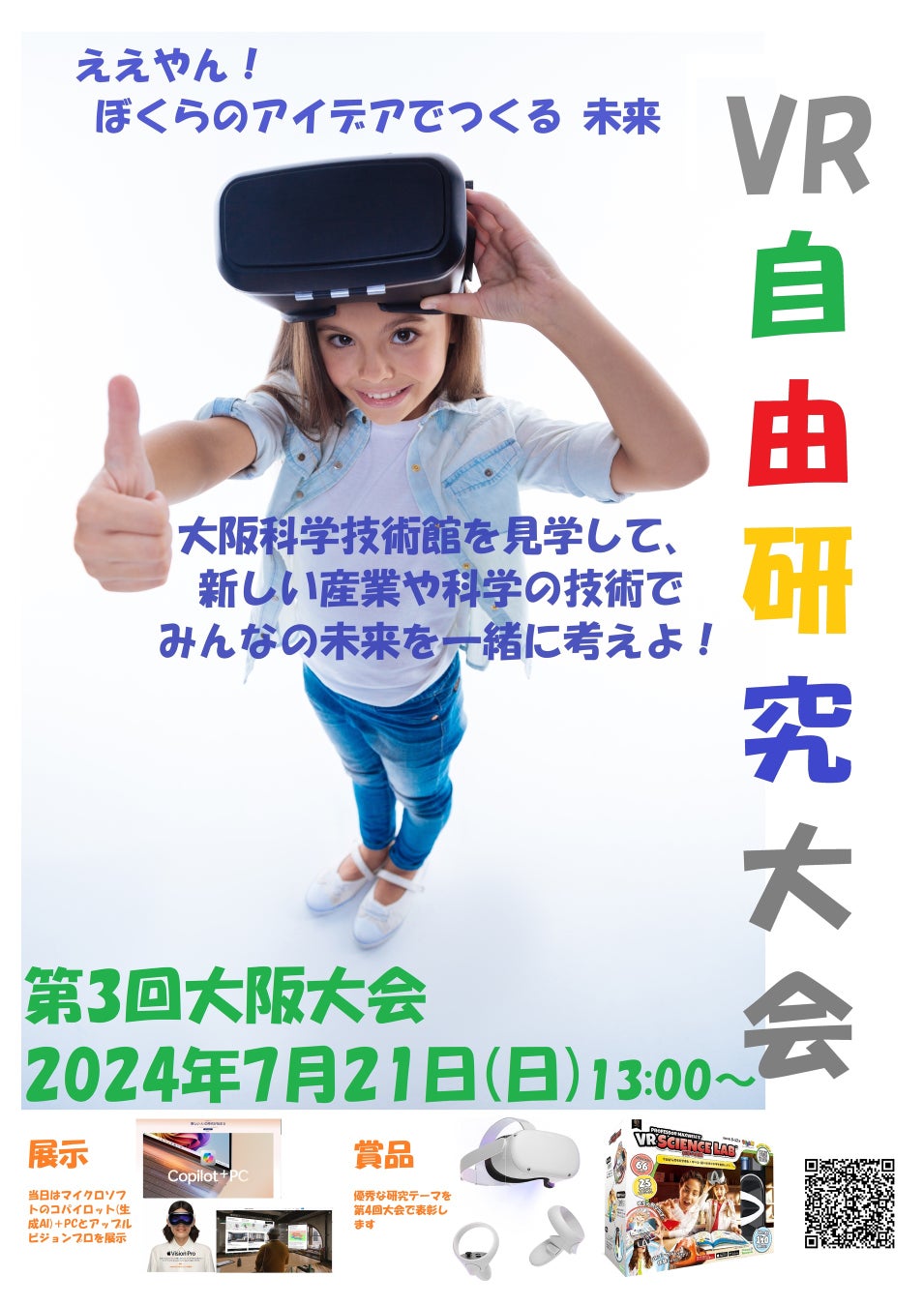 【チルドレンファースト】子ども・学生VR自由研究大会第3回大阪大会2024年7月21日(日)13時から大阪科学技術館で開催します