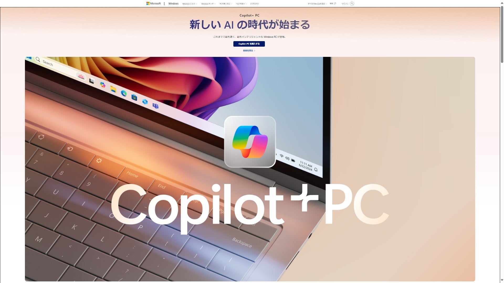 リアルタイム翻訳や画像生成などの AI を多用するプロセス専用のコンピューター チップであり、40 兆回以上の操作を秒速で実行 (TOPS) できる超高速ニューラル プロセッシング ユニット (NPU) を搭載した、新しいクラスの Windows 11 PC です。