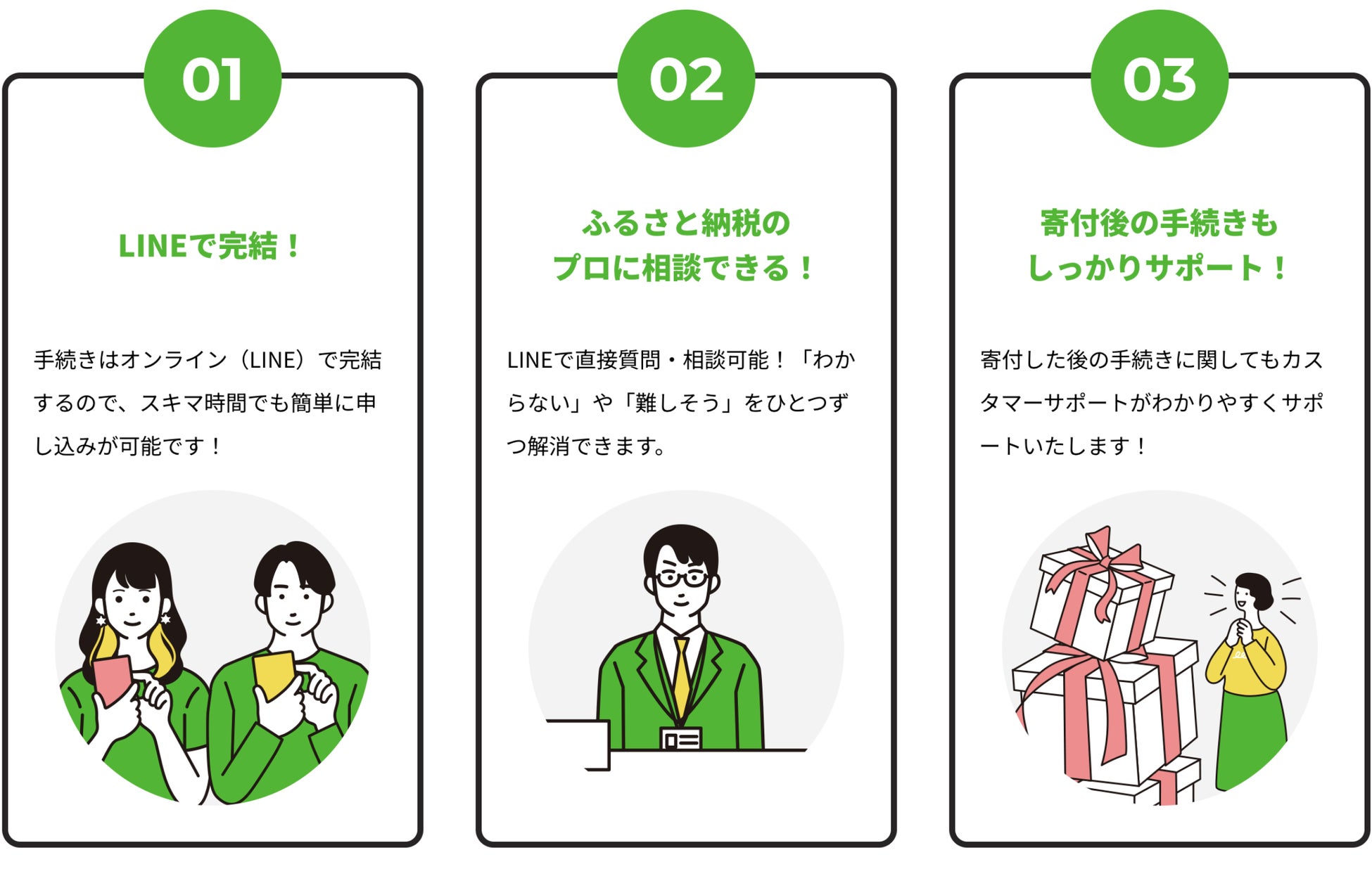\ふるさと納税onLINEが選ばれる3つの理由/