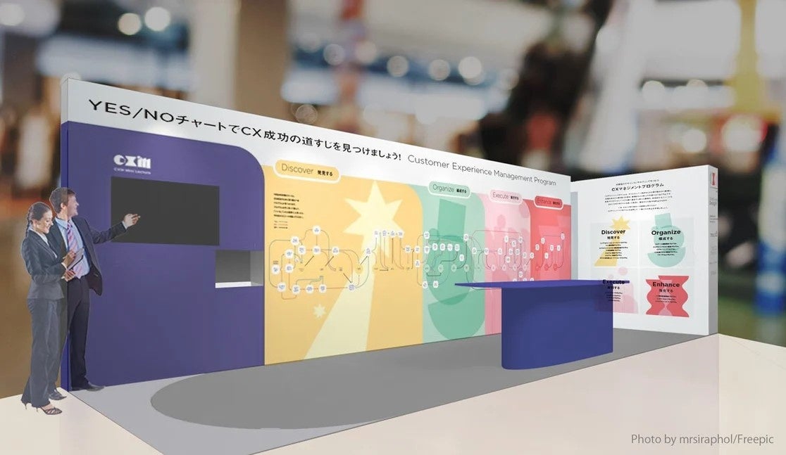 出展ブースでは、CXアクティビティ「Yes/Noチャートでわかる!顧客マネジメント」として、Yes/Noクイズで自社の状況に答えていくことで課題が明確となり、それに対して必要なCXプログラムが何なのかが分かるチャートを体験いただけます。