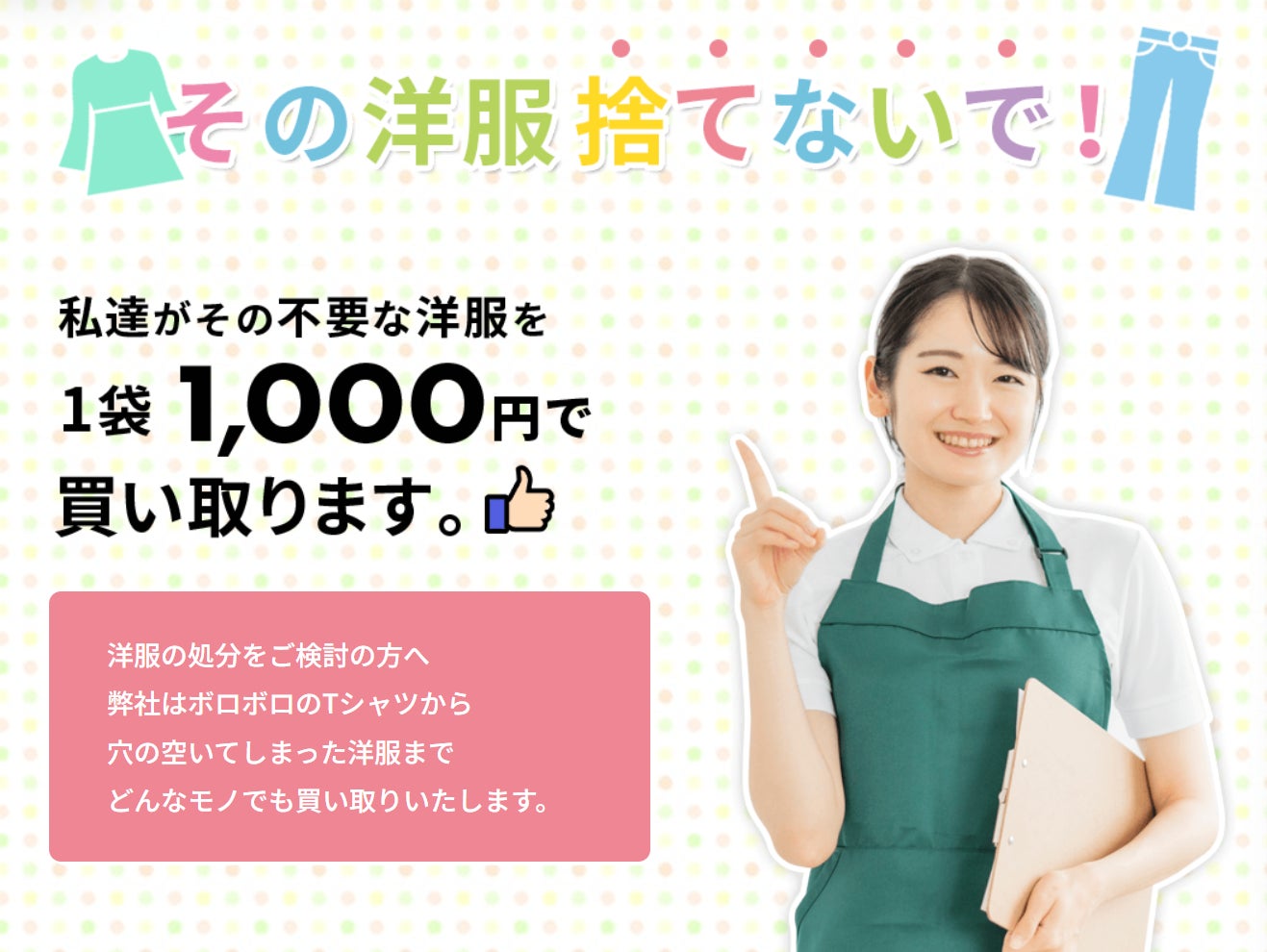 不要な洋服をゴミ袋にまとめていただき、その袋を1,000円で出張買取 |