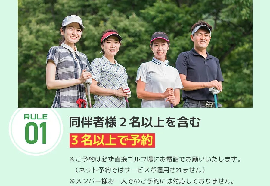 ・ゴルフ場への送客:メンバー以外の同伴者2人以上と必ずラウンドしていただける(2サムプレイは