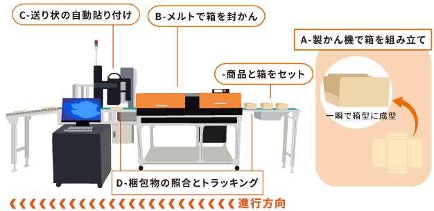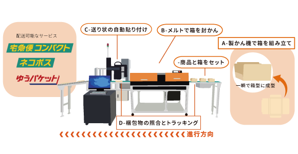 1:メール便箱自動梱包システム「MELT-Line(メルトライン)」