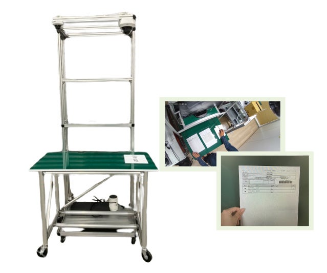 梱包作業時に撮影することで、納品書と梱包した商品の組み合わせに間違いがなかったかを後から確認することができます。架台の大きさ等はお客様の現場に合わせてカスタマイズできます。